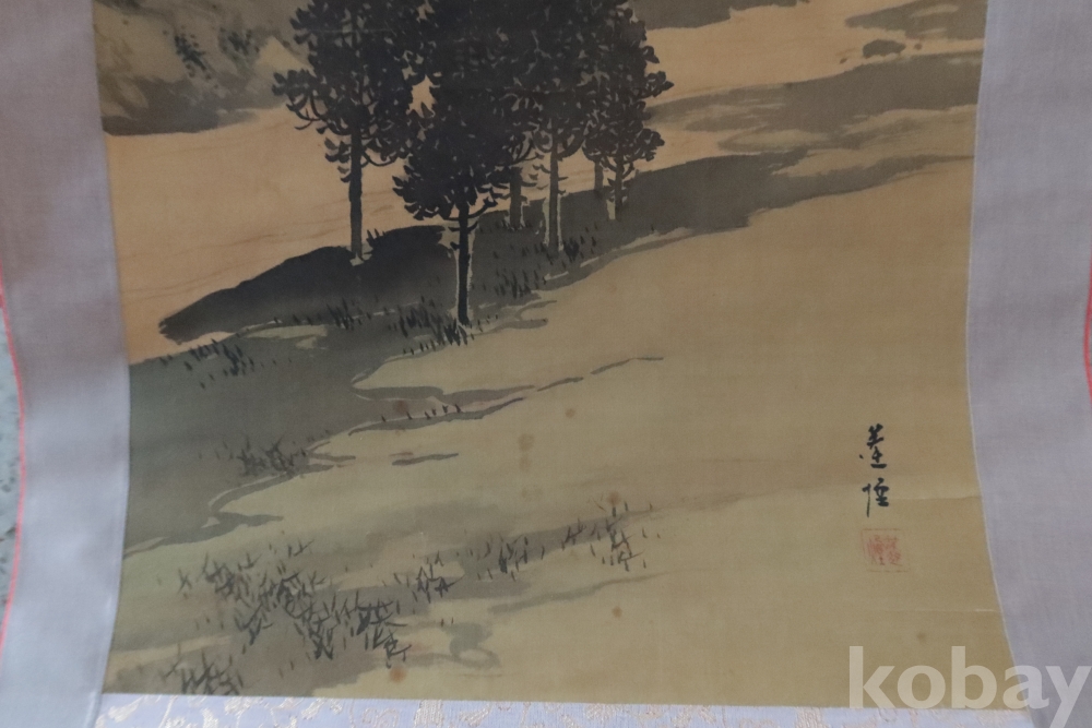 새롭게 족자를 한 1930대 비단화 임니다 세월의 반점이 보이는 명화 이며 화가의 혼을 가진 산수화 이며 평화로운 운치 있는 명화 임니다 사진 참조 하세요