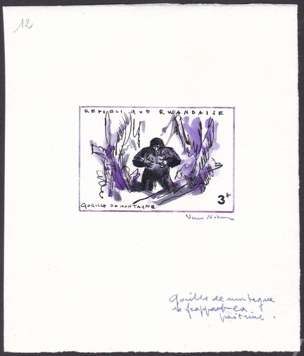 (하늘천) 르완다 1970년 마운틴고릴라, 장 반 노튼 (Jean Van Noten, 1903-82)의 미승인 프루프, 에세이