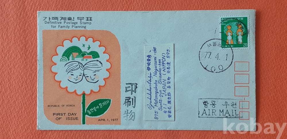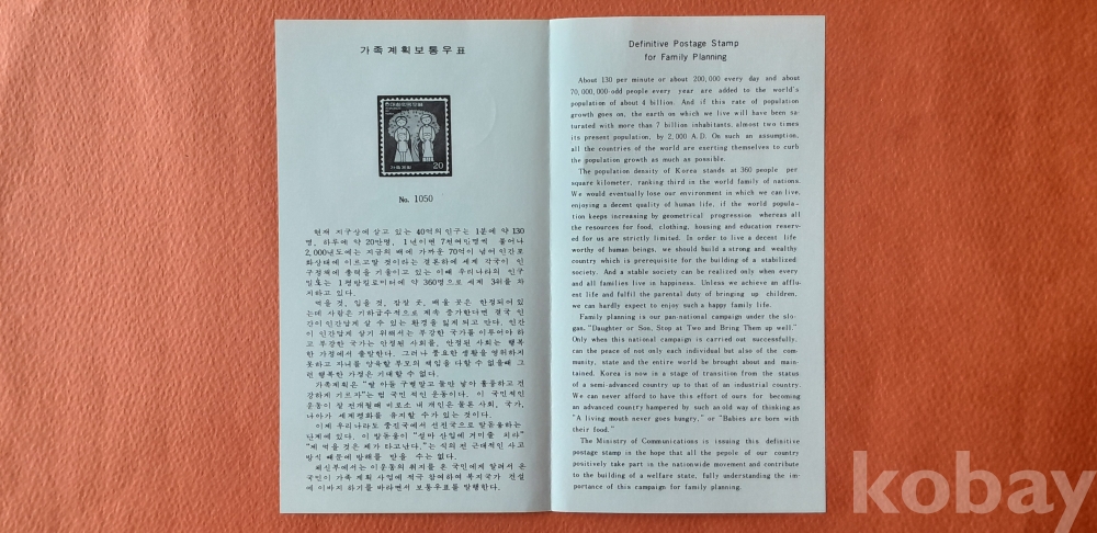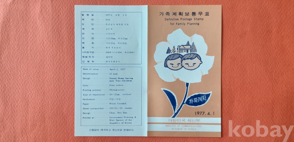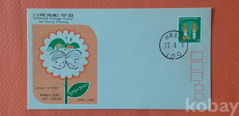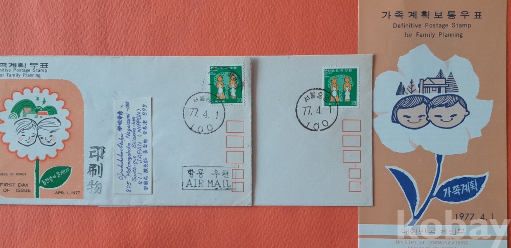 가족계획 실체봉피 및 초일봉피 등 2종(안내카드 포함) 초일봉피 입니다.