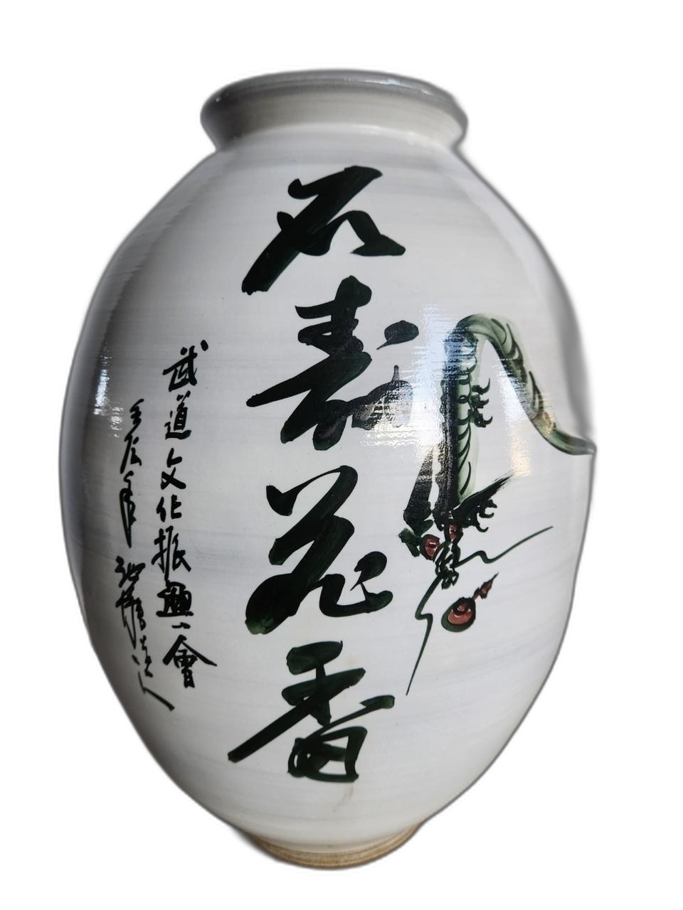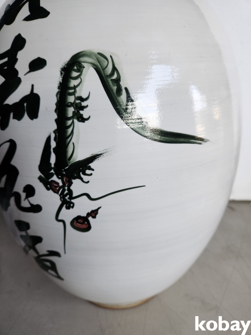 용 그림과 글씨 분청 도자기 입니다.