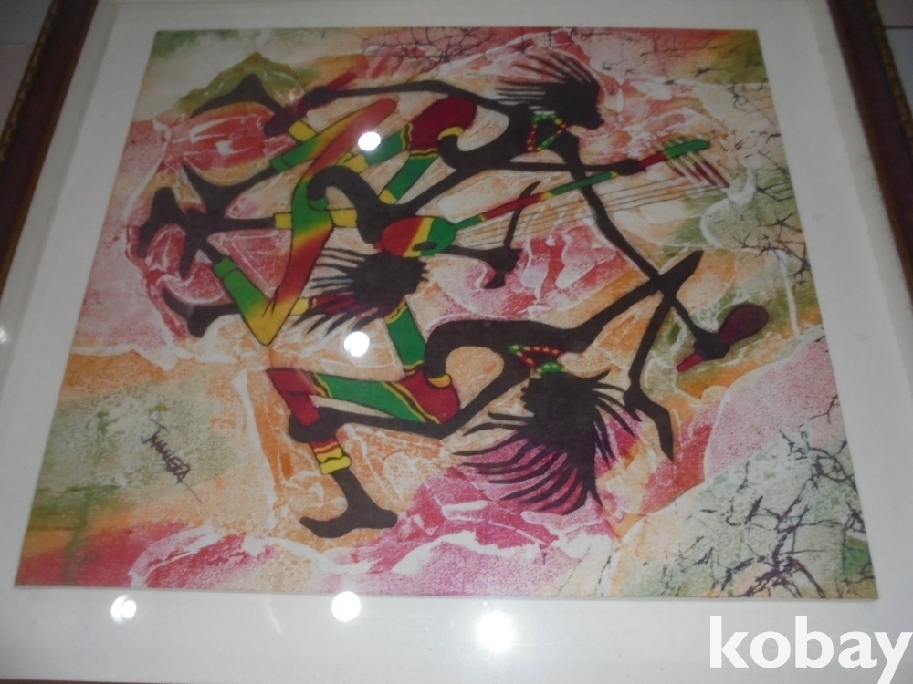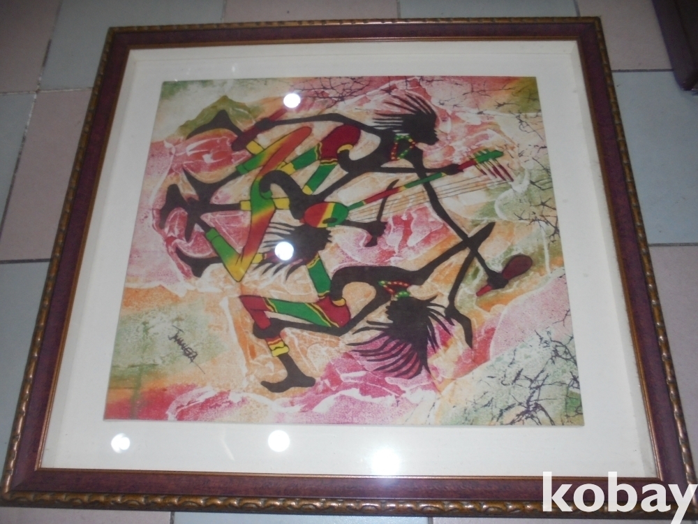 반비구상으로 인디안이 알수없는 춤을추는 반비구상에 작가명있는 수준높은 실지그린 전문화가그림 액자