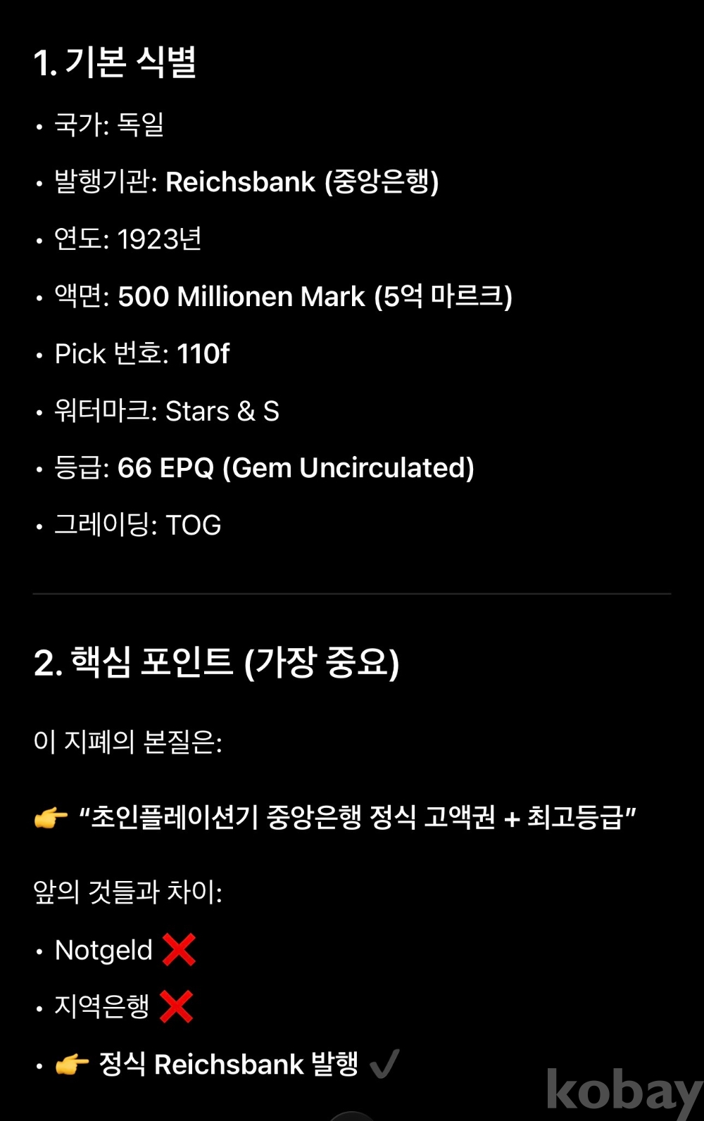 PMG 그레이딩이 아니므로 위 내용은 참고만 하시길 바랍니다.