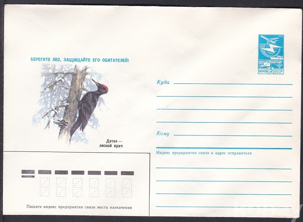 (하늘천) 소련 스테이셔너리 S1393 자연보호, 숲을 돌보고 서식동물을 보호하세요, 새, 딱따구리-숲의 의사