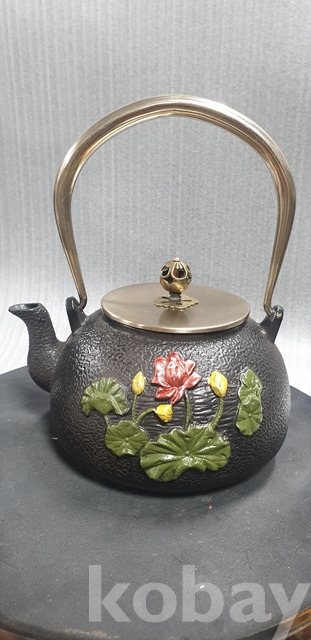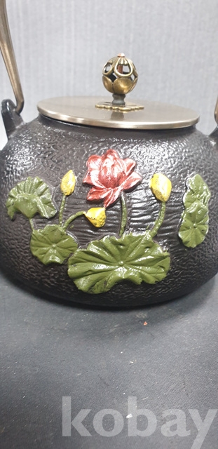 a-158.두껑에 용문당 낙관이있는 연화문 무쇠찻주전자
