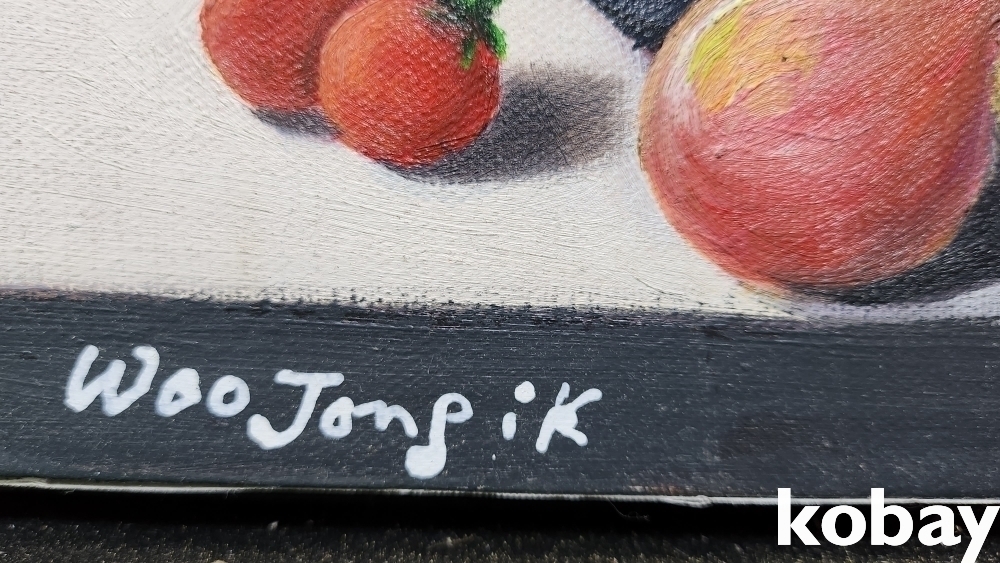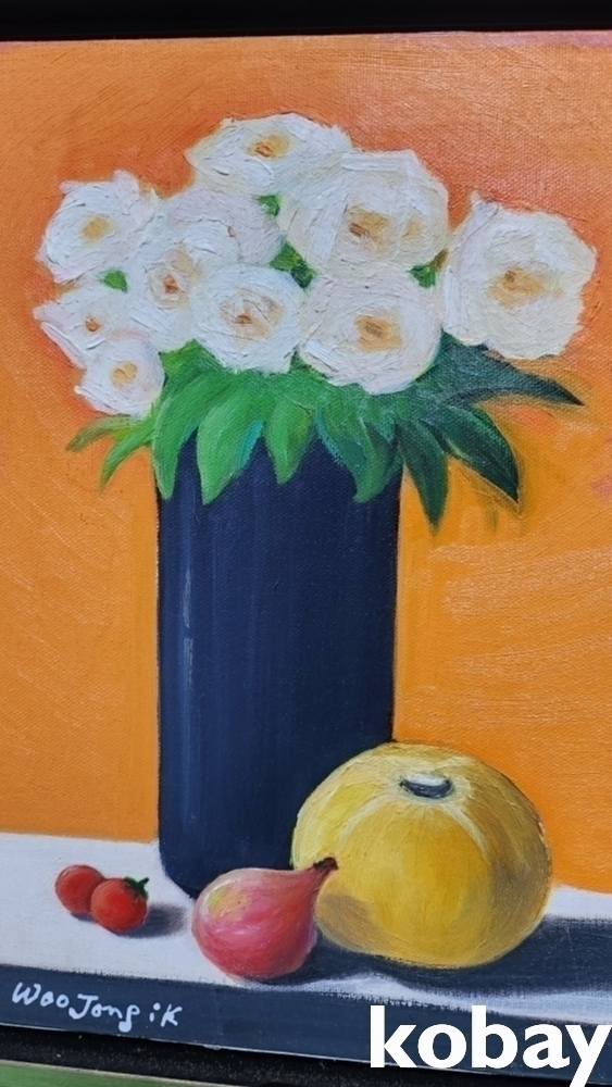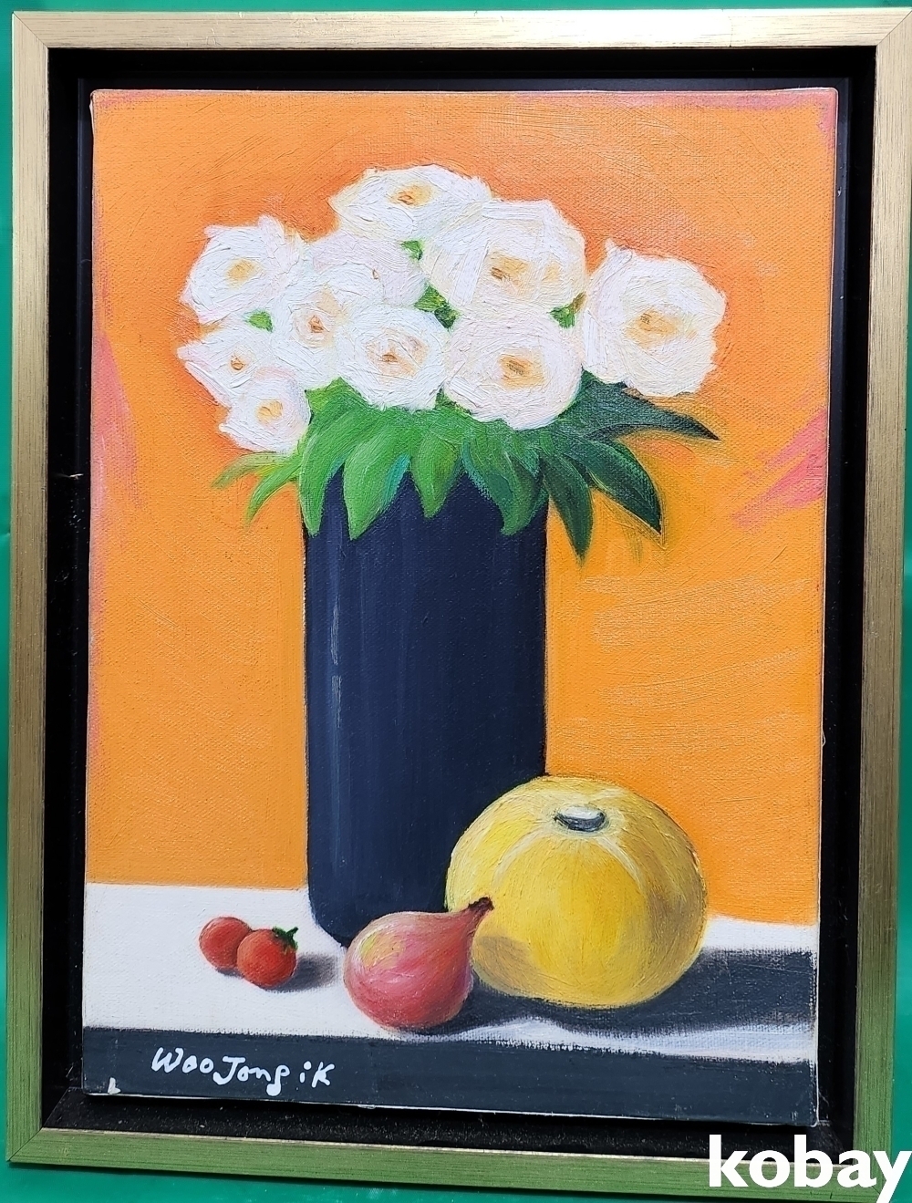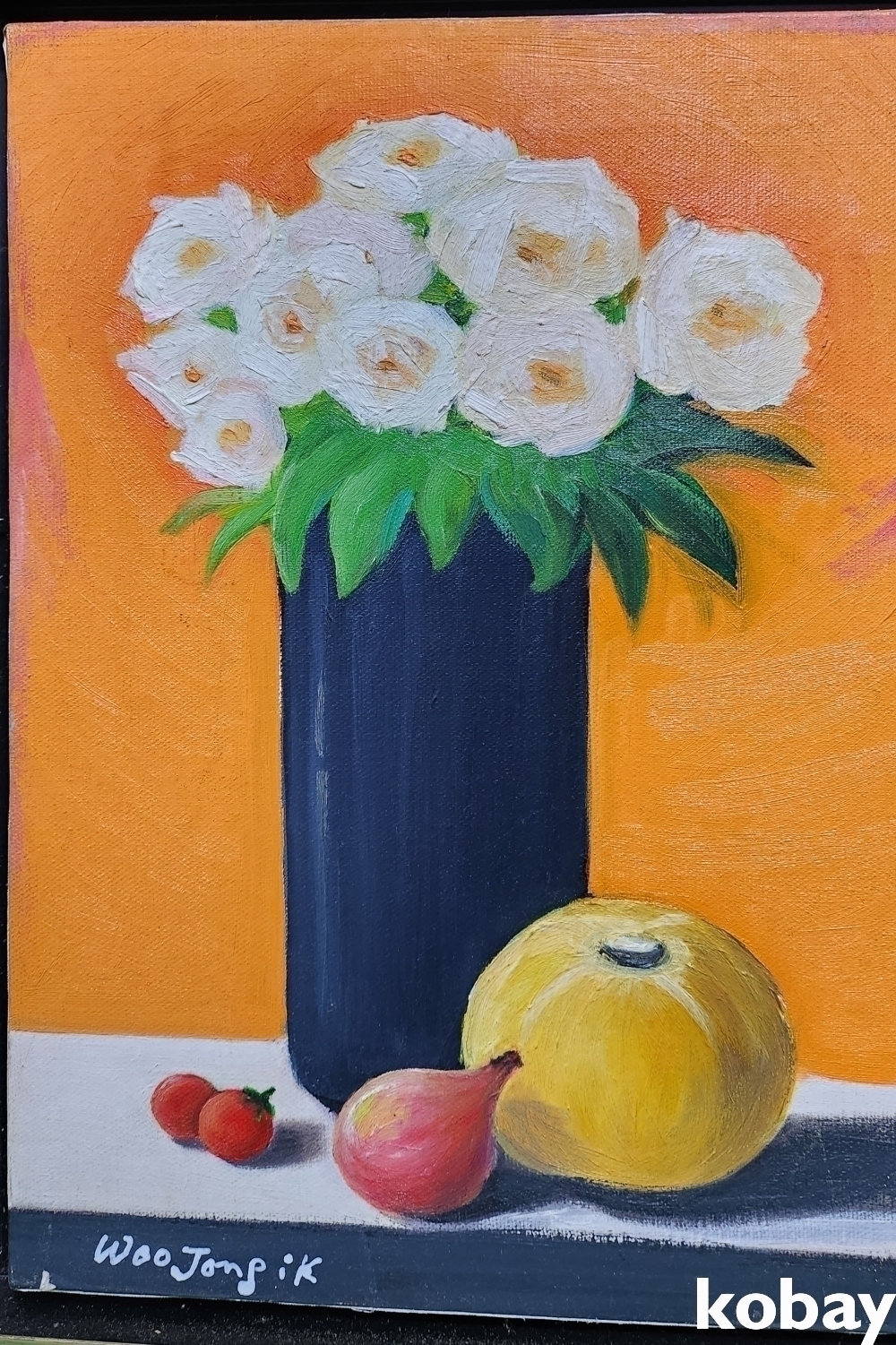 유명 서양화가 우종익 作 켄버스 유화 정물 5호입니다,