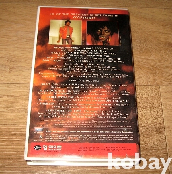 마이클잭슨 -그레이티스트 히스토리 비디오테이프 한국판 (VHS)