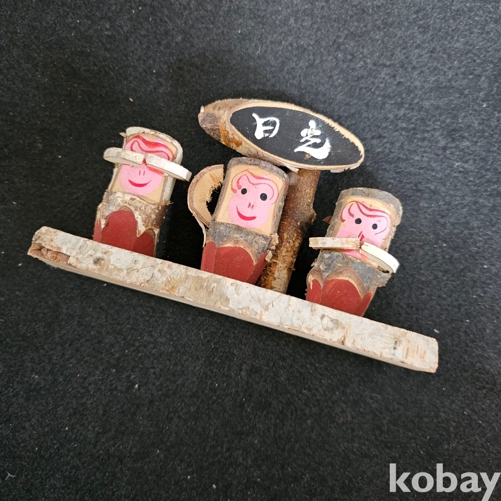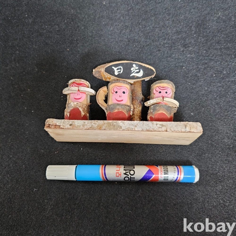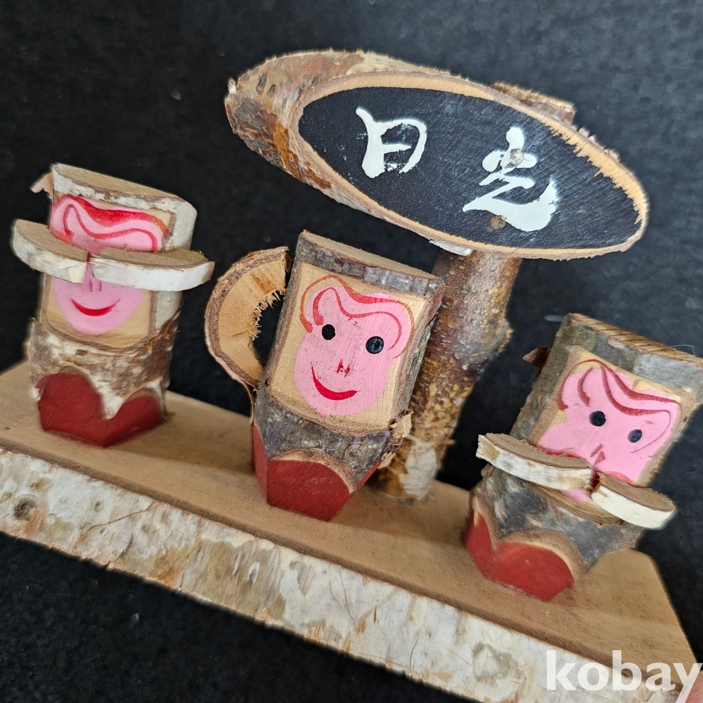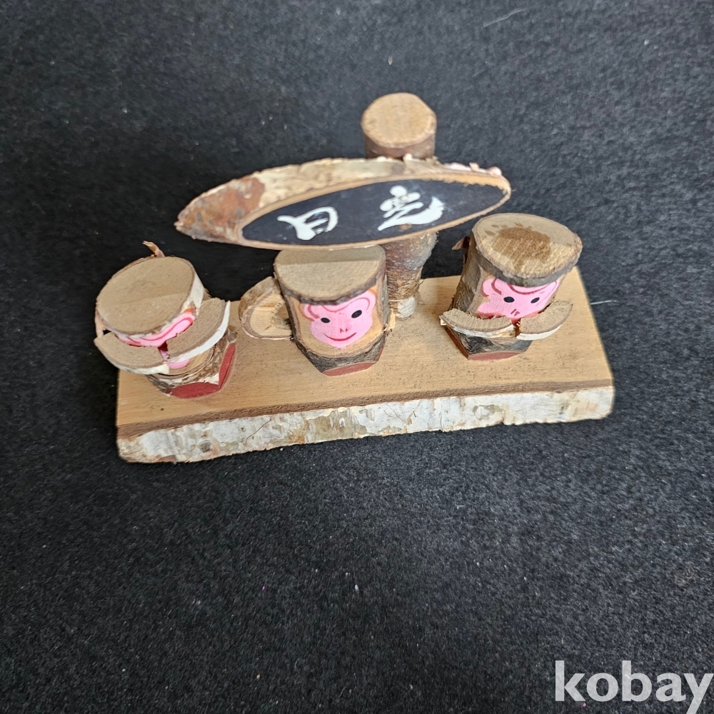(((관광기념품/목각))) 오래전 일본에서 만든 못난이 원숭이 3종 목각인형