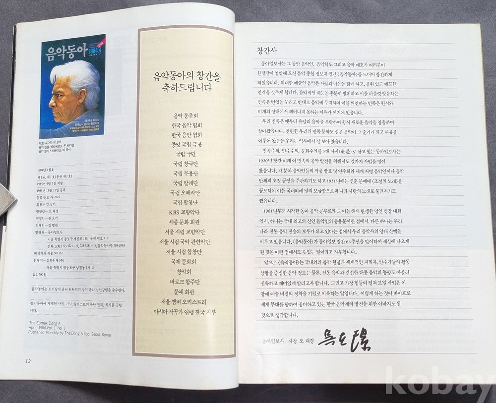 도서명: 월간 <음악동아> 창간호 (1984년 4월호)