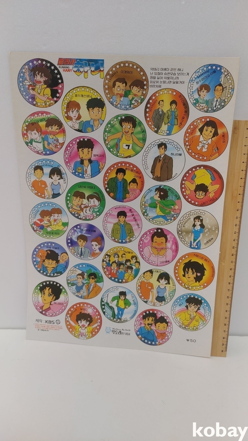 예전 오리지널 달려라하니 딱지입니다