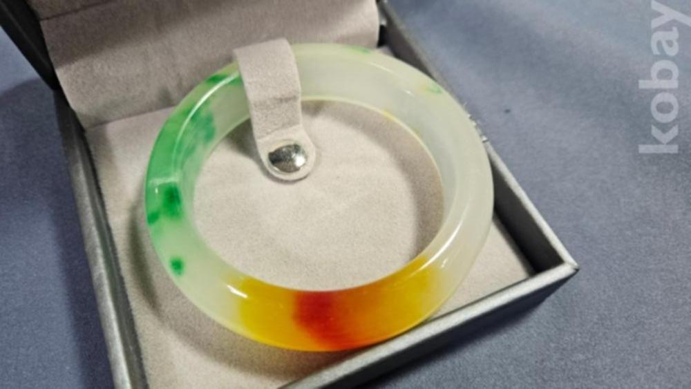 통으로 깎은 옥팔찌입니다.