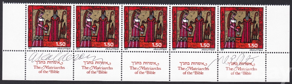 (하늘천) 이스라엘 Sc639 로슈 하샤나 (나팔절), 유대인의 새해, 성경의 가모장 (家母長), 이삭의 아내 리브가, 디자이너 사인 5매 스트립