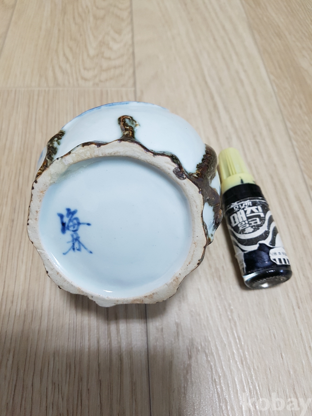 해림 이춘구 진사 철화 청화 도형 연적 1점