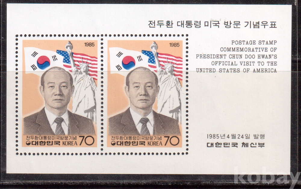 (한국시트) 1985.4.24 전두환대통령 미국 방문 sheet of 2 MNH