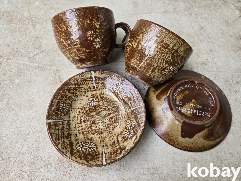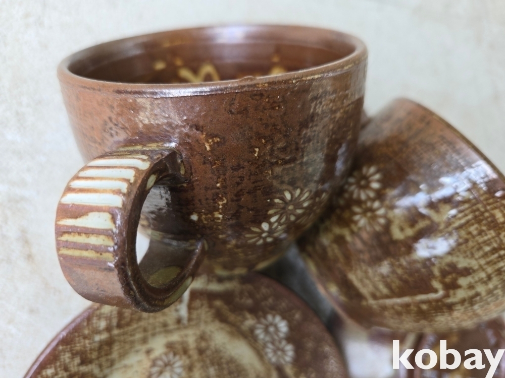 국화 문양이 있는 찻잔 셋트 입니다.