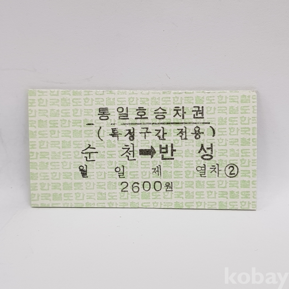 - " 순천 ▶ 반성 " 미사용 통일호 승차권(특정구간전용) 2600원