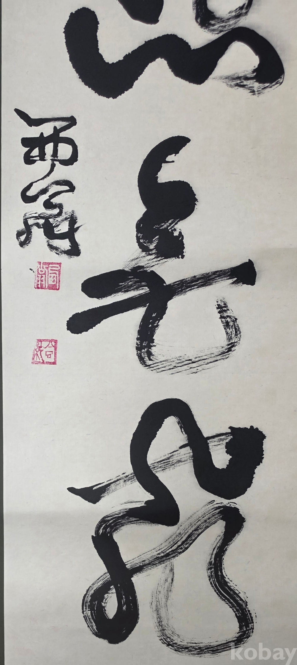 작품 규격34cm*131cm 화선지에 먹 오랜세월감 상태양호