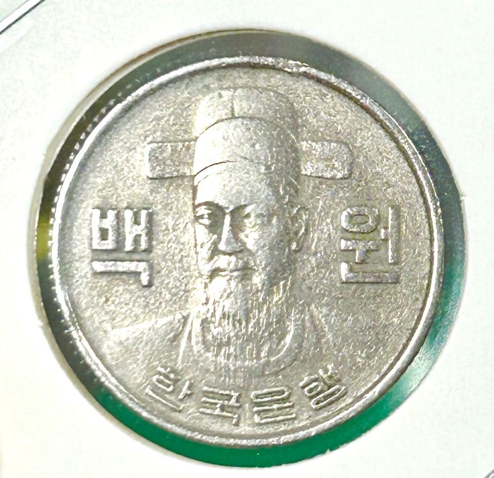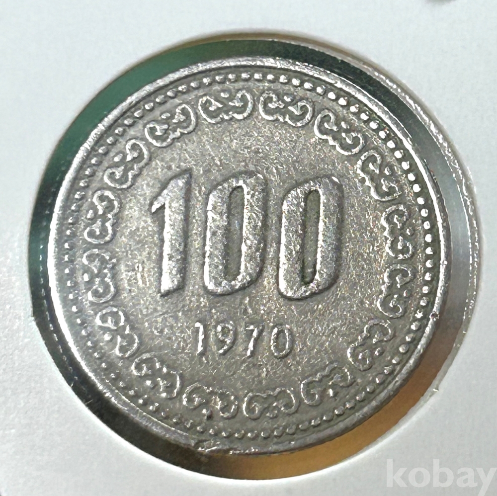 대한민국 최초의 100원 주화인 1970년도 발행분입니다.