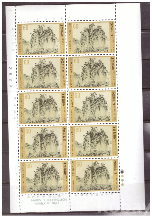 (힌국전지) 1980.2.20 한국미술 5천년-김홍도의 산수화 sheet of 10 MNH