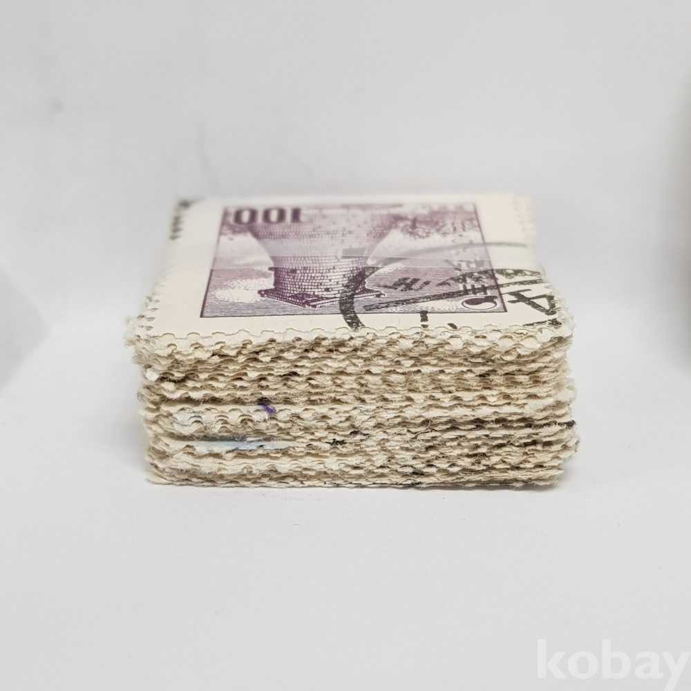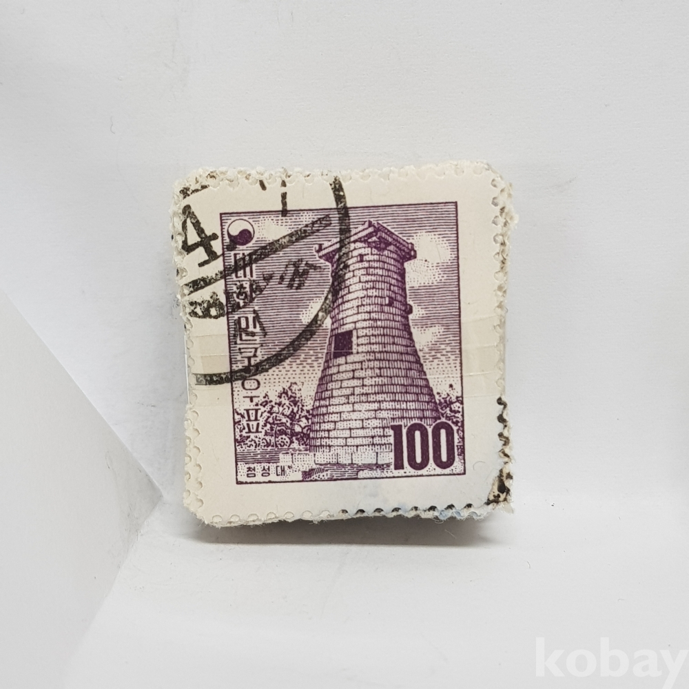 - 1957년 환화 첨성대 100환 보통우표 일부인 미확인 사용제 우표 약 100매 묶음