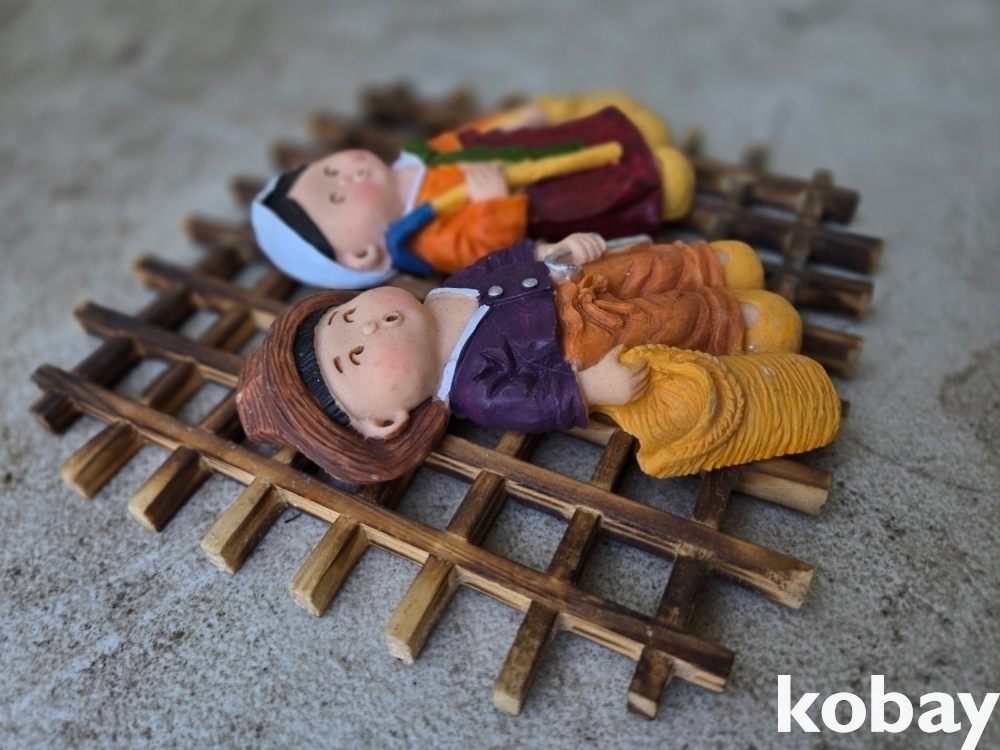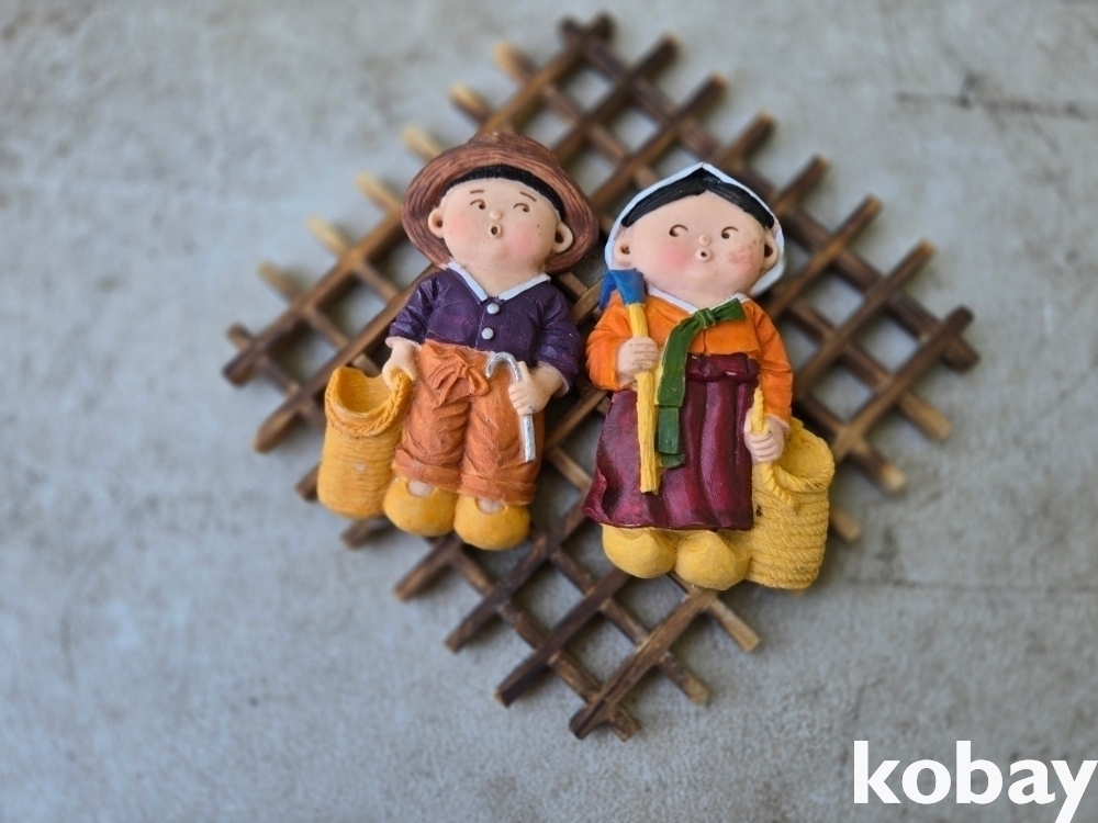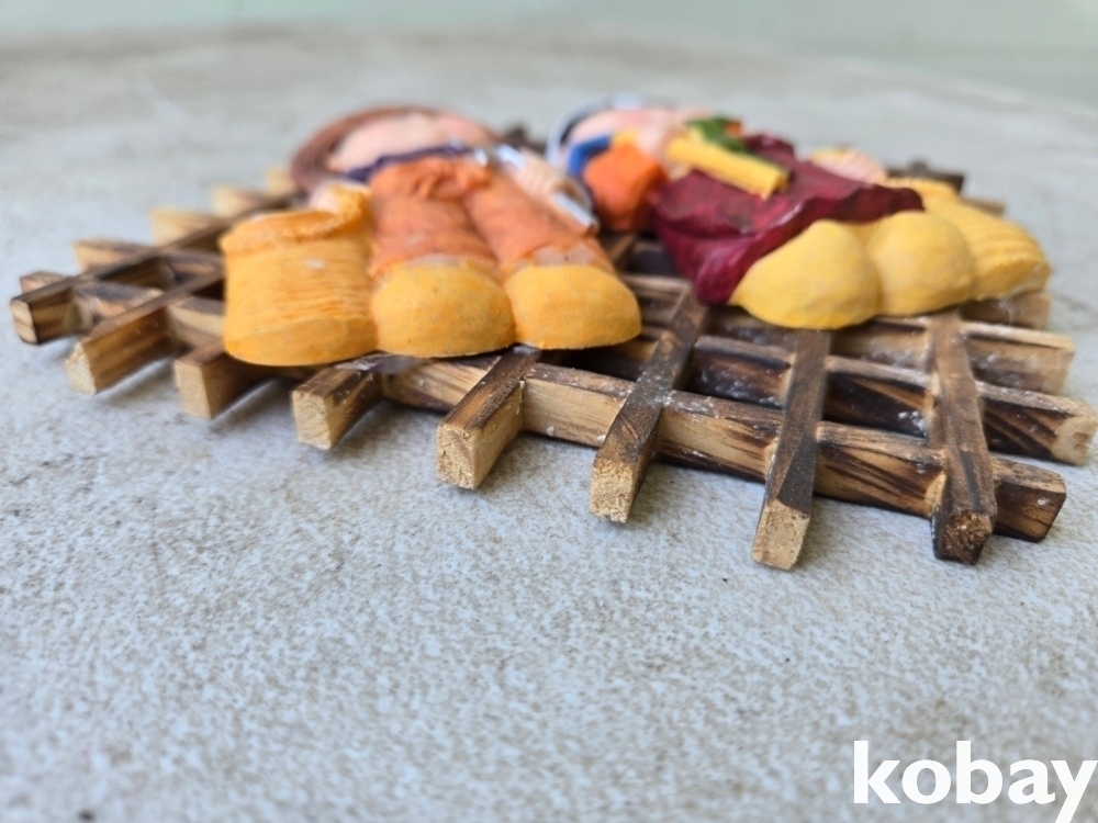 격자 창틀에 전통 인형 표현 벽걸이 소품 입니다.