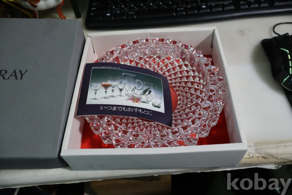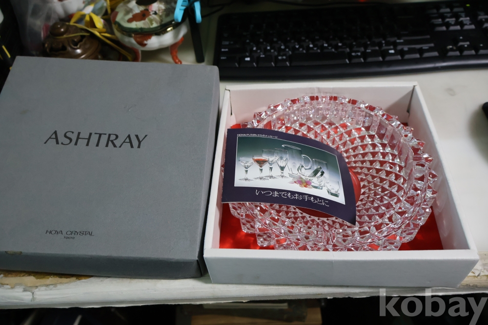 일본 크리스탈 최고 공방 호야 임니다 묵직한 무게감 멋진 컷팅 등등 호야의 명품 이며 재털이 로 만든 명품 이며 여러 용도로 사용하는 미사용 명물 임니다