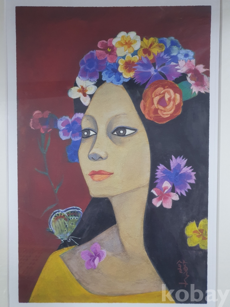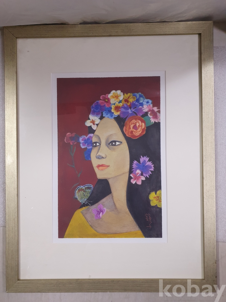 {천원경매} 4-0846 꽃머리 여자 액자 (44*56.5*1.5, 묶음배송 불가)