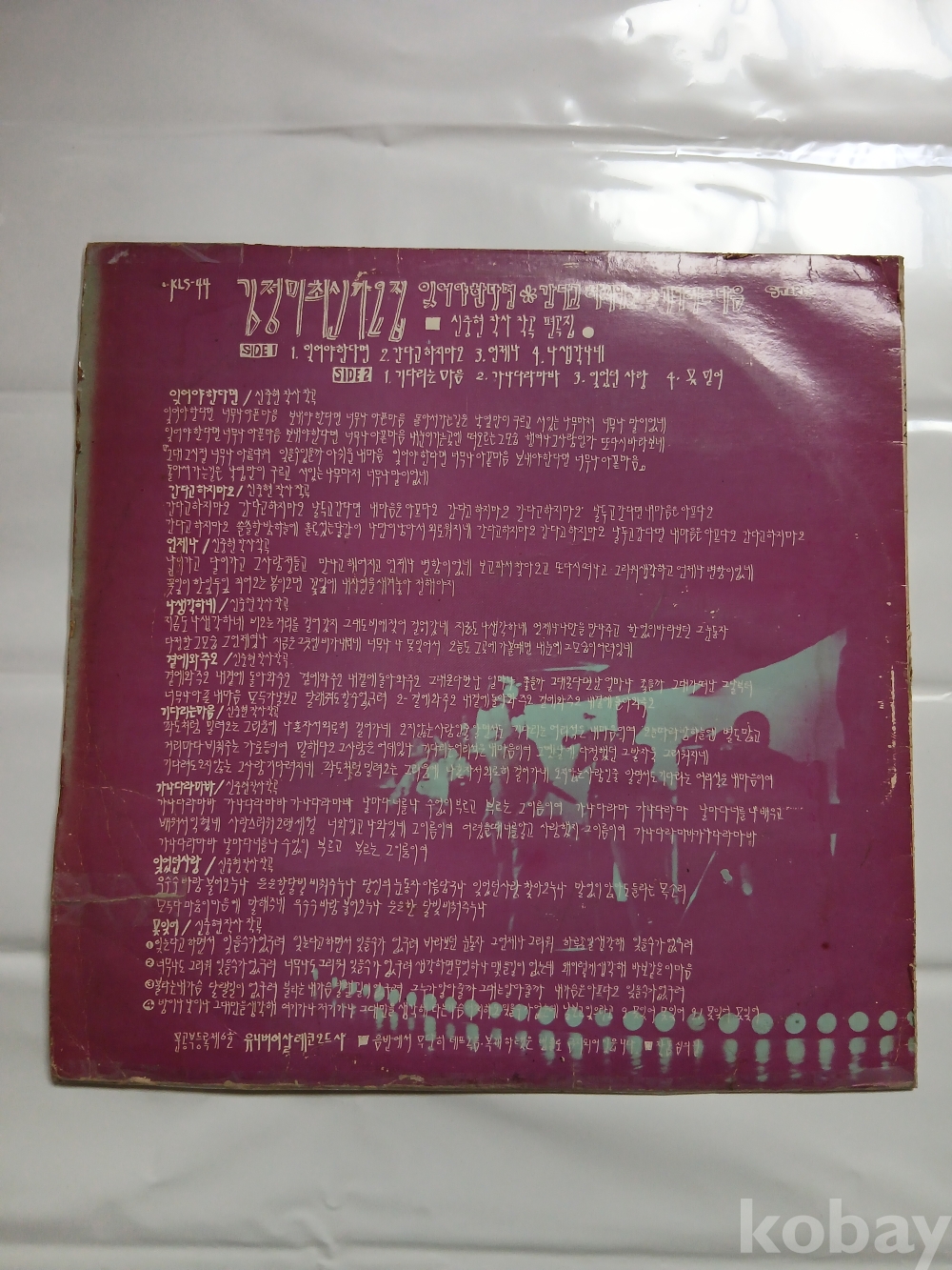 | 자켓상태 | G : 눈에 띄는 손상, 테이프, 필기 존재 | 음반상태 | G : 눈에 띄는 스크래치, 튐 또는 노이즈 발생 | 발매정보 | 초반 | 가사지여부 | 무 |