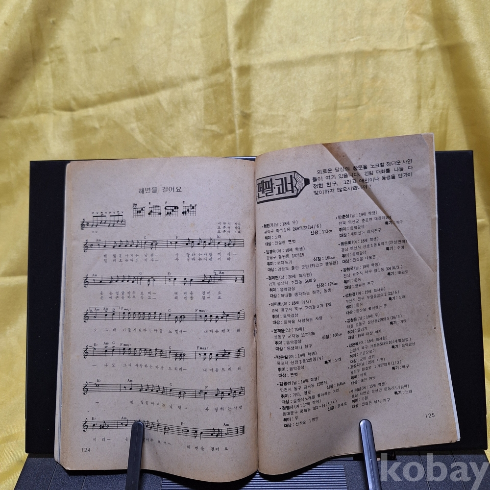 노래책 -<애창 포크송>-표지모델: 아리랑 내님아 의 희자매 -1979년 세광출판사 발행. 오/1