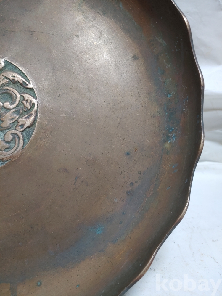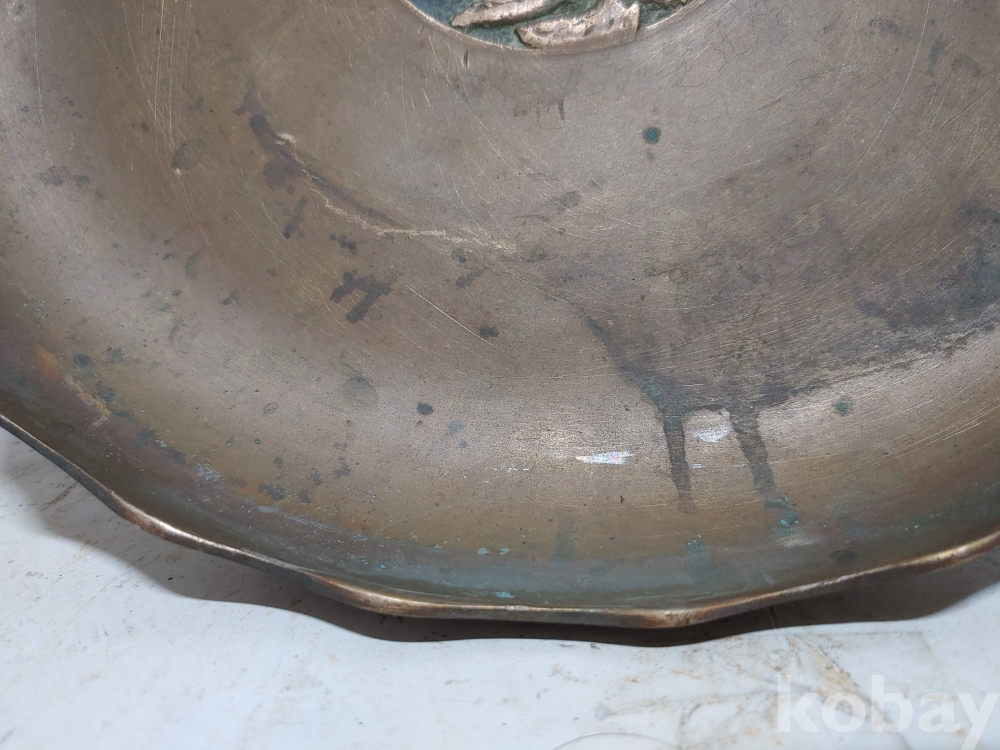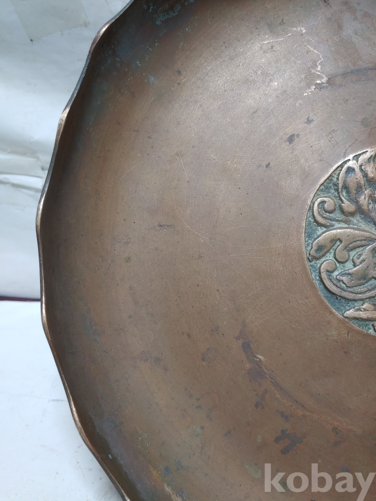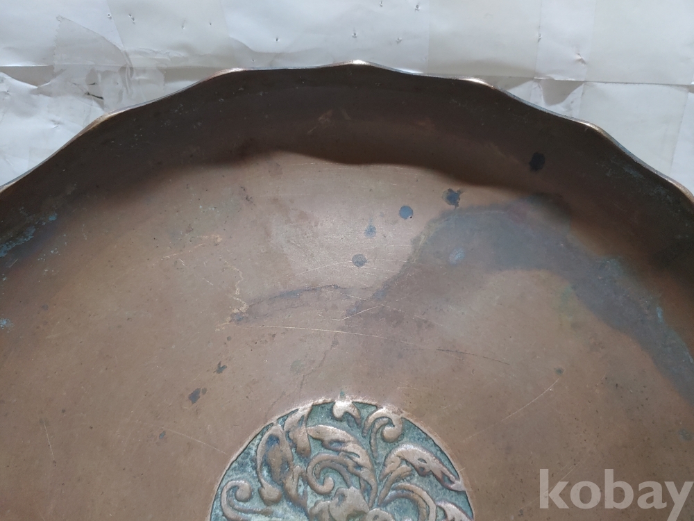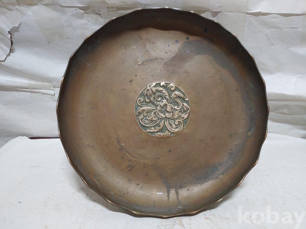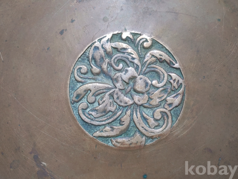 놋쇠 쟁반의 뒷면에 납땜 흔적이 있으나 앞면은 상태가 깨끗 함