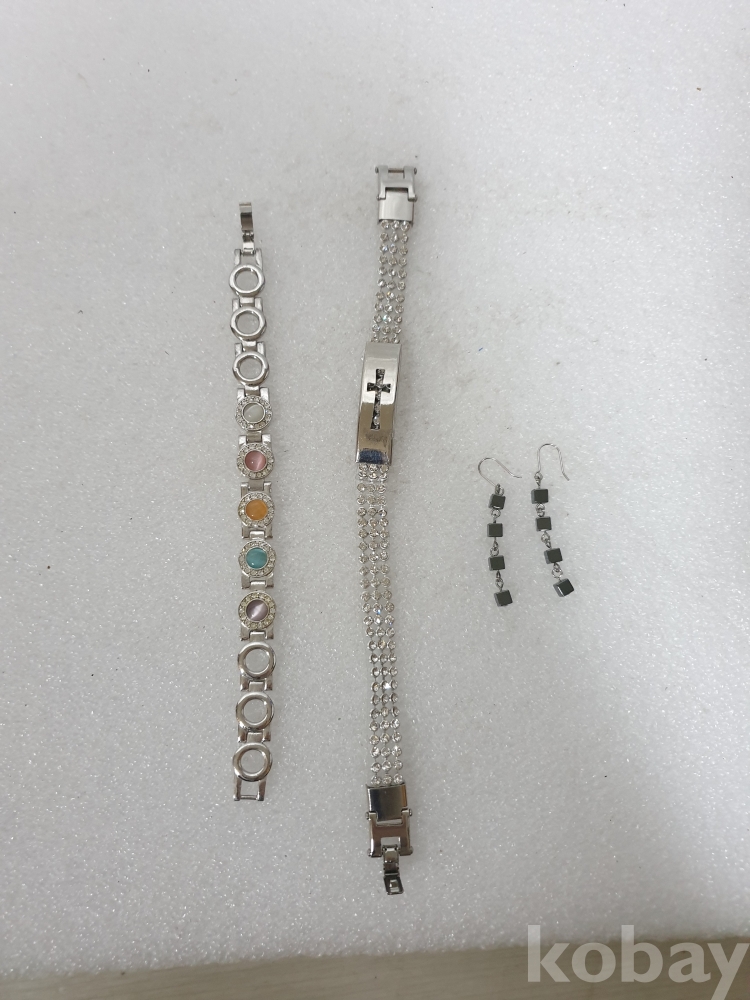 {천원경매} Y-4-0977 큐빅 팔찌 2개+귀걸이 1쌍