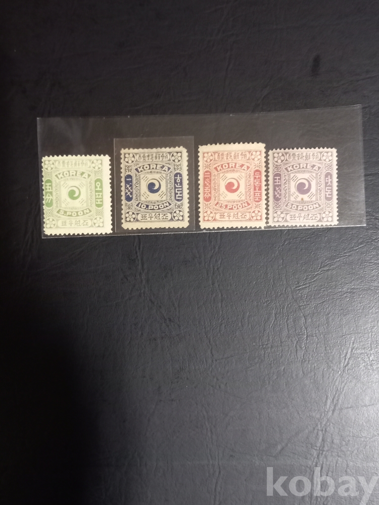 1895년 대한제국 시대에 발행한 태극 보통 제2판 (4종완) 미사용 우표입니다
