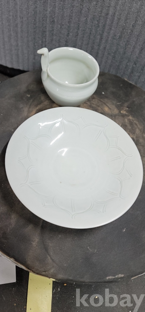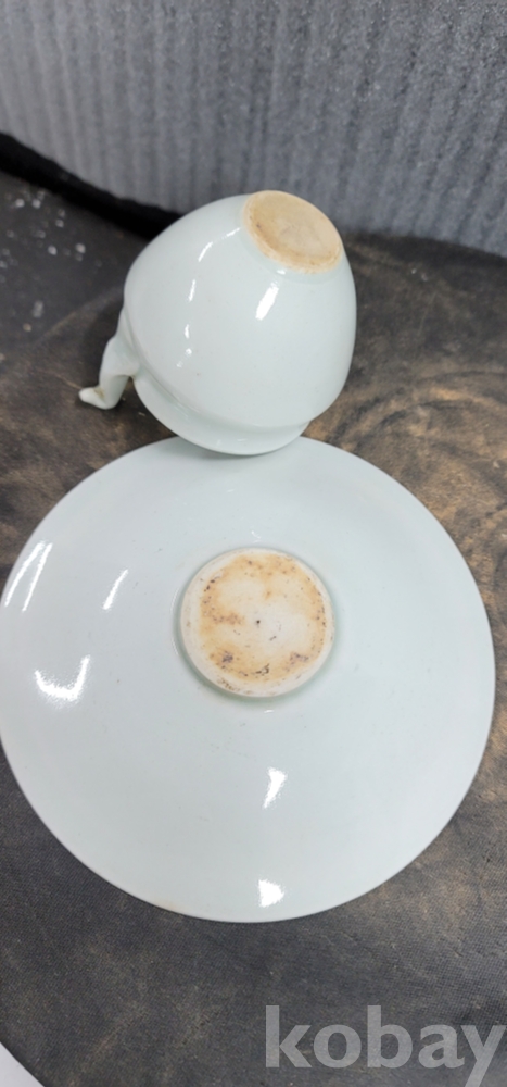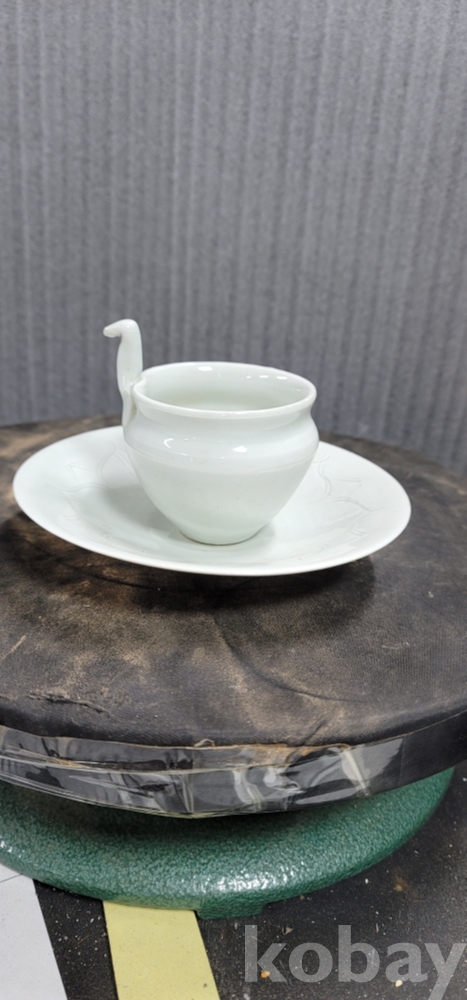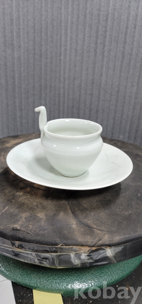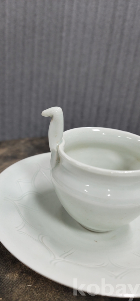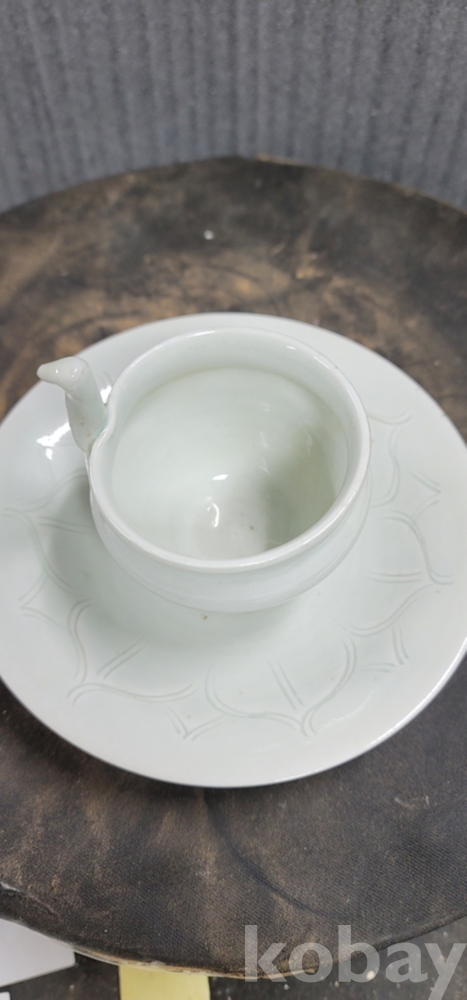 d-32.오래된 손잡이달린 연화문 백자 찻잔 셋트