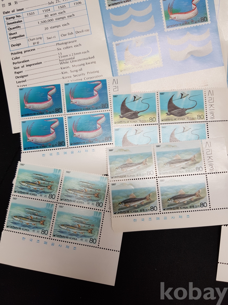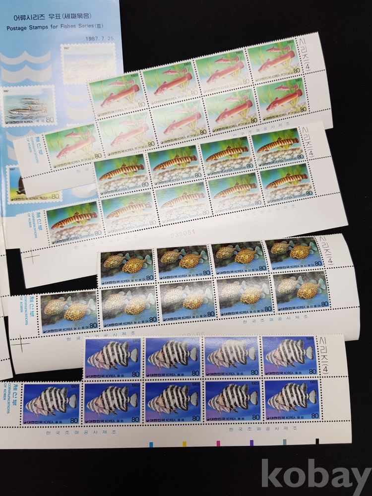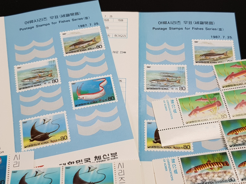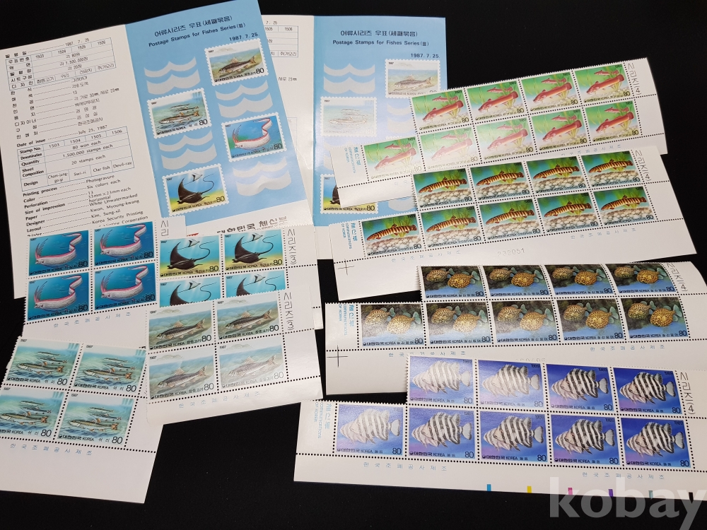 - 1987년 어류시리즈 시트, 명판, 안내카드 등 모음