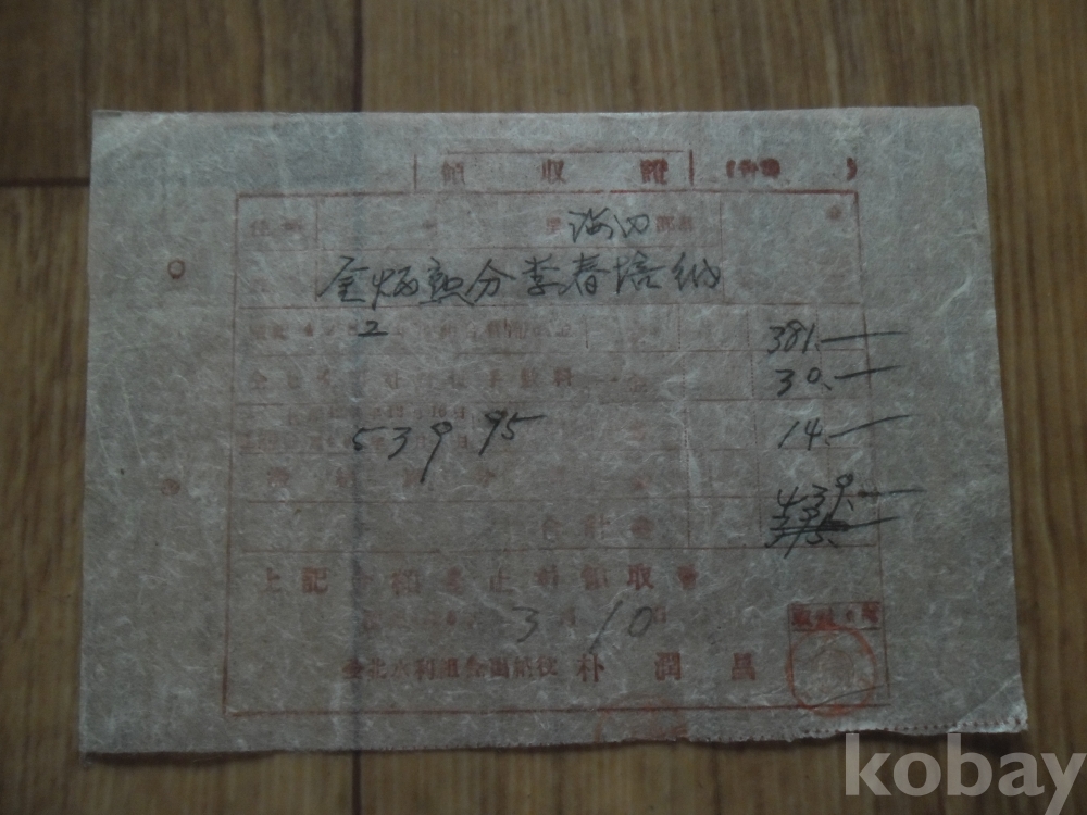 1960년 전북수리조합 발행 영수증(완주군삼례면)
