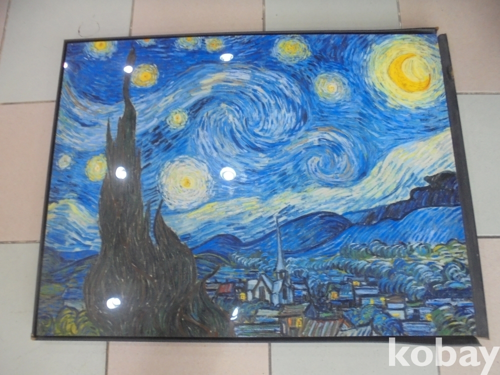 아주 유명한 빈센트반고흐작인 별이빛나는 밤 최고작으로 산뜻하게 잘그려 세계최고작 고흐 별이빛나는밤 아크릴유화 액자