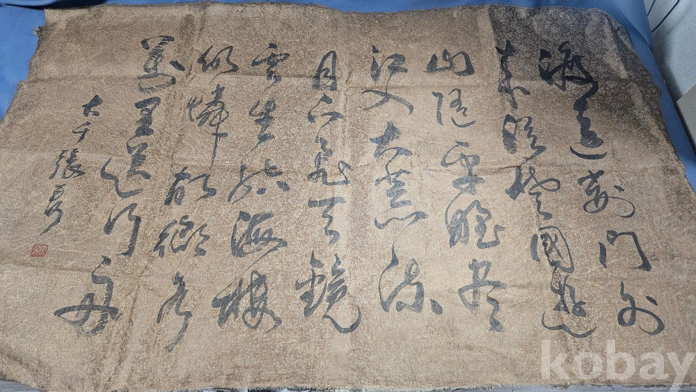 큼직한 천에 쓰여진 글씨 한점 입니다.