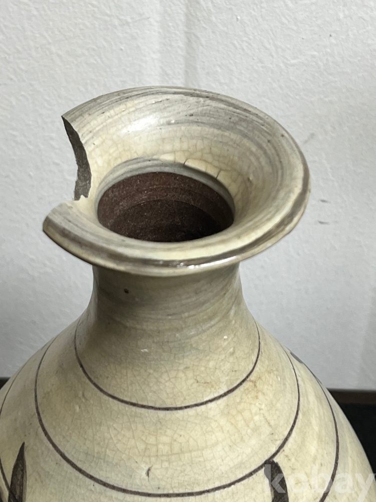 삼엽문 아래 줄기쪽에 작게 수리된 곳이 있으며, 구연부 파손이 있습니다.