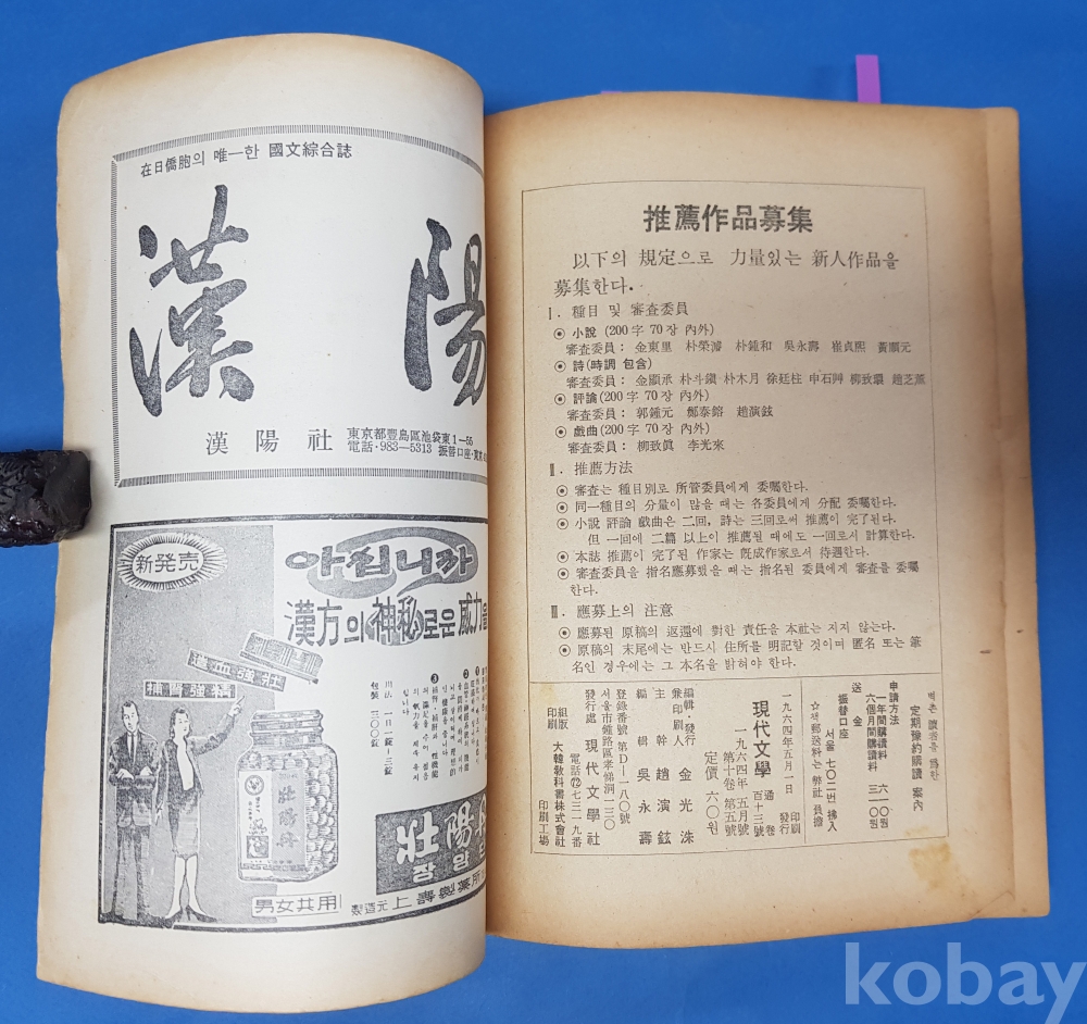 ▶朴斗鎭의 글 “詩薦後記”가 실린 現代文學 1964년 5월호, 월간 현대문학,285쪽