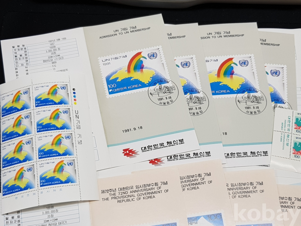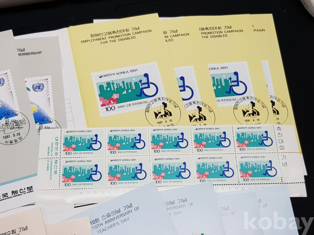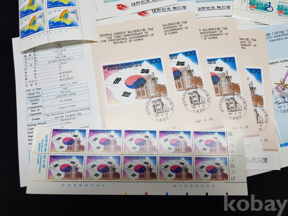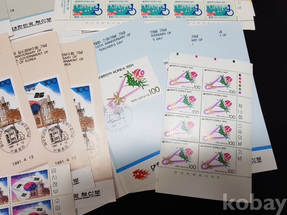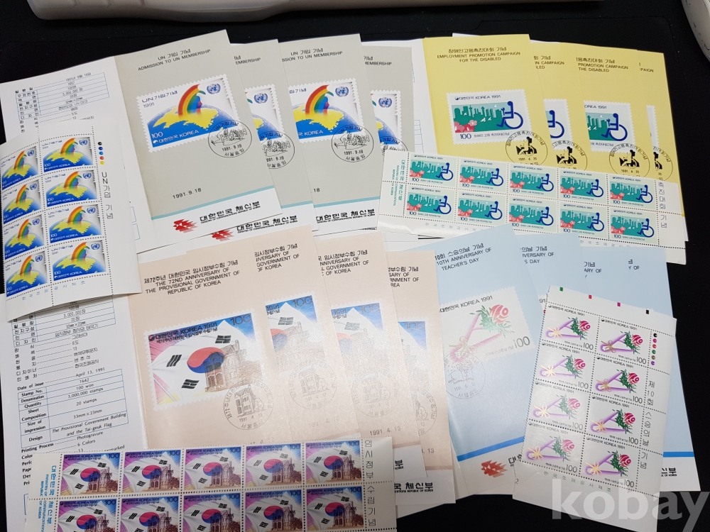 1991년 기념우표 시트, 명판, 안내카드 등 모음