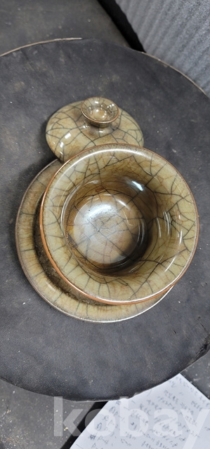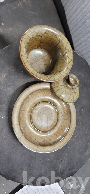 p-7..중국5대도자기중하나 두껑달린정요 찻잔셋트