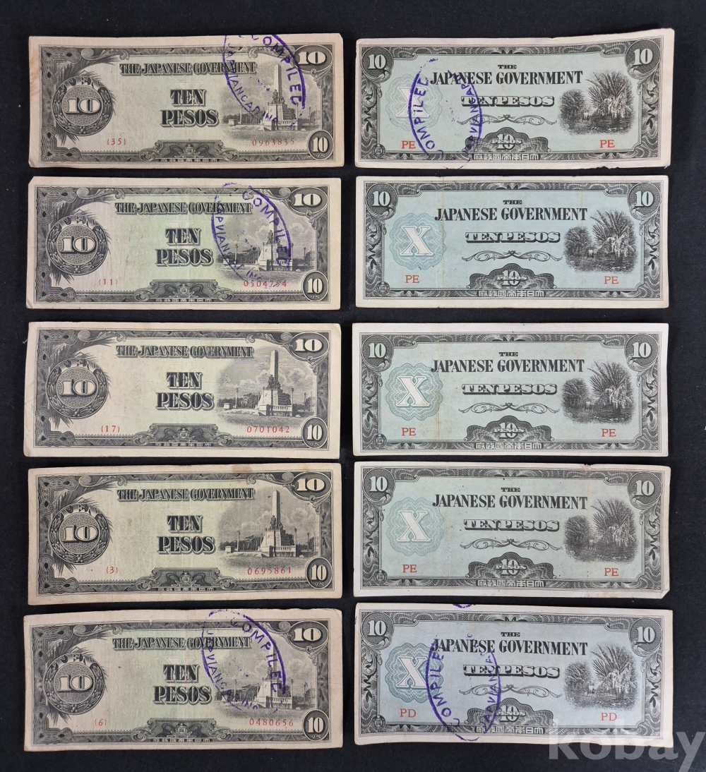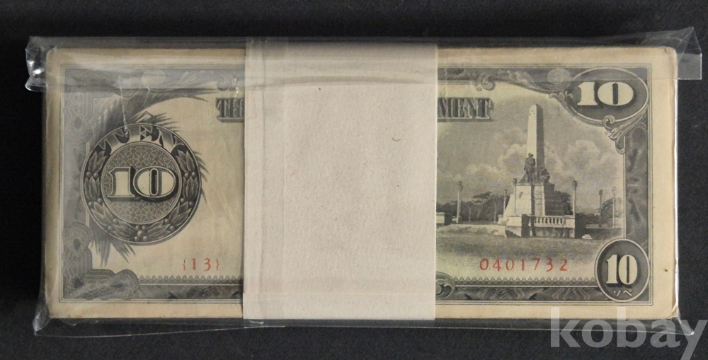- 태평양 전쟁 일본 군표 10페소 필리핀 사용 약 100장 다발- 군용 수표