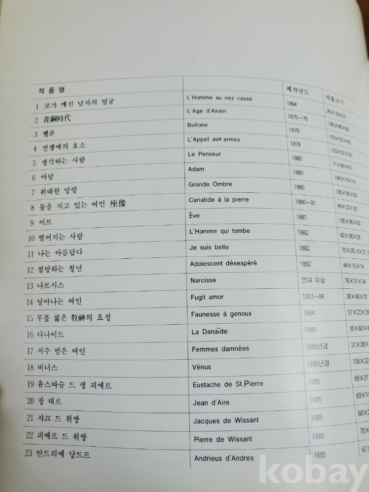 1. 로댕전, 국립현대매술관, 1985년, 101쪽, 상태 상, 사진 참조