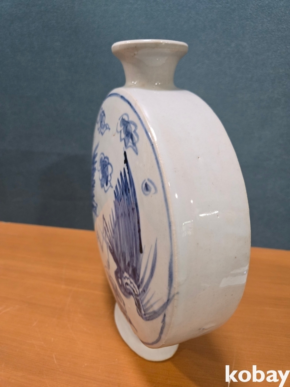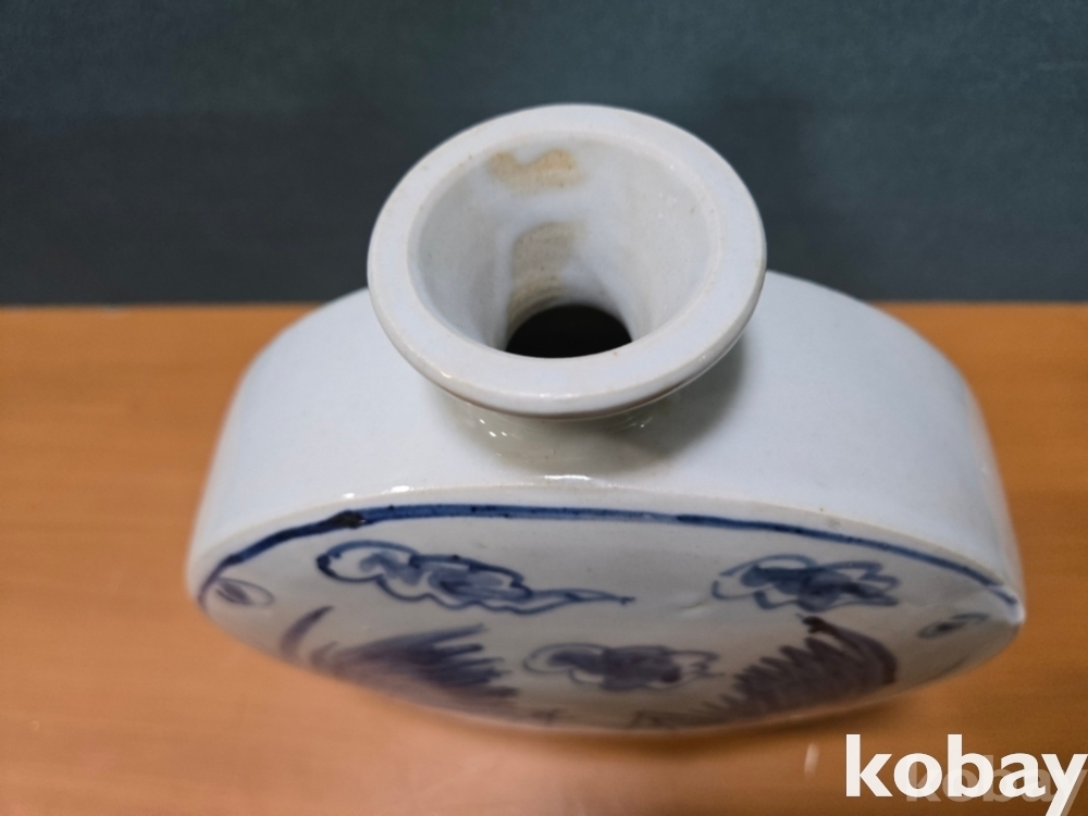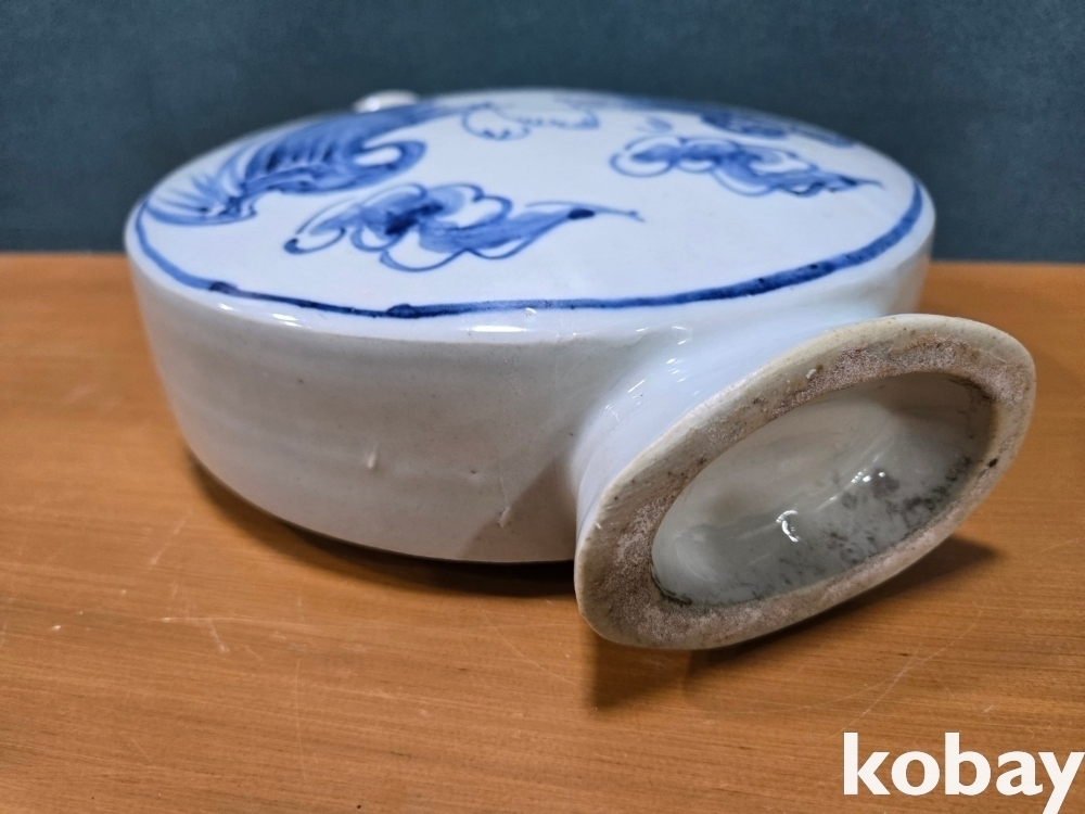 양쪽에 새 표현 둥근 편병 도자기 입니다.