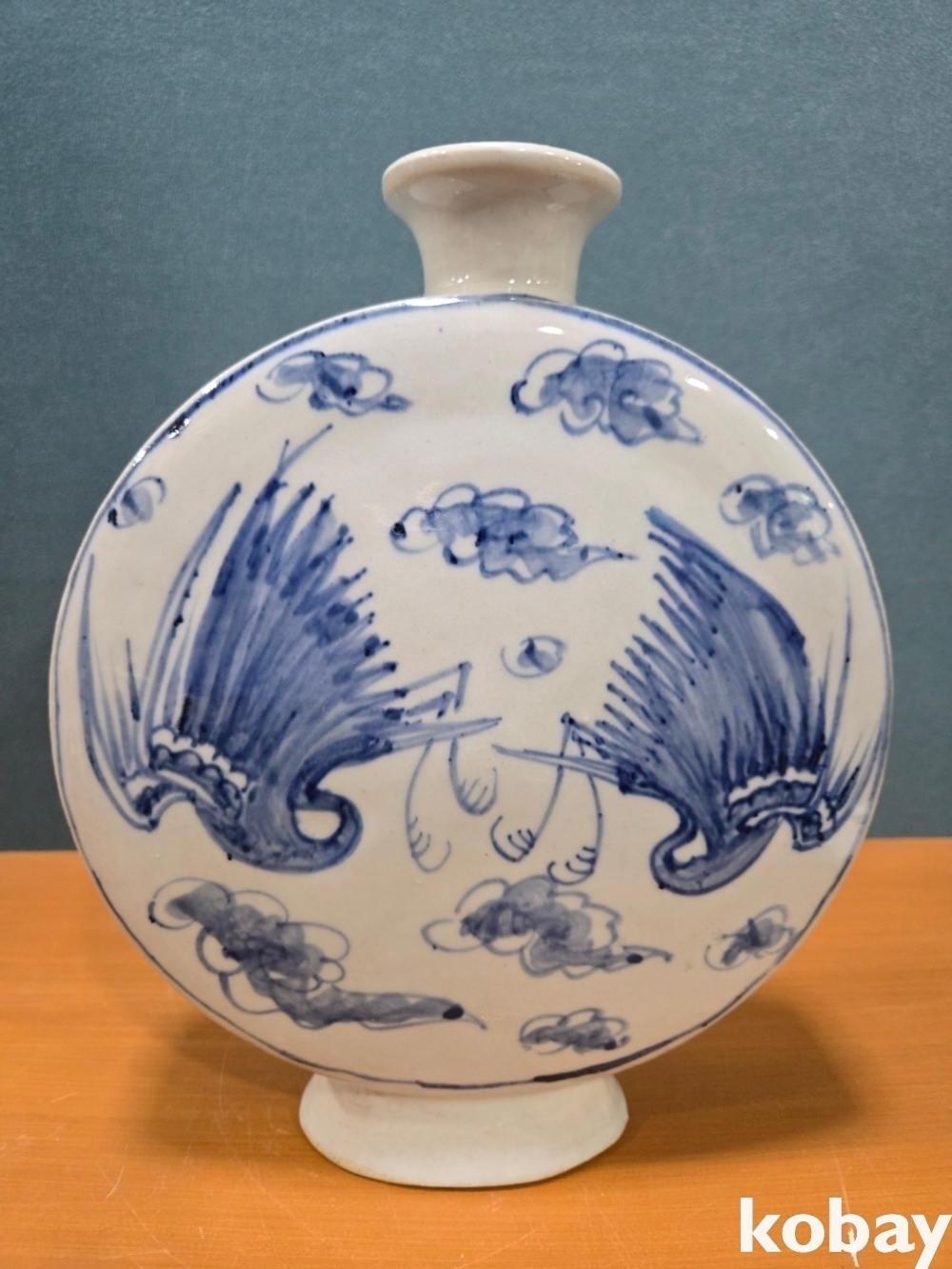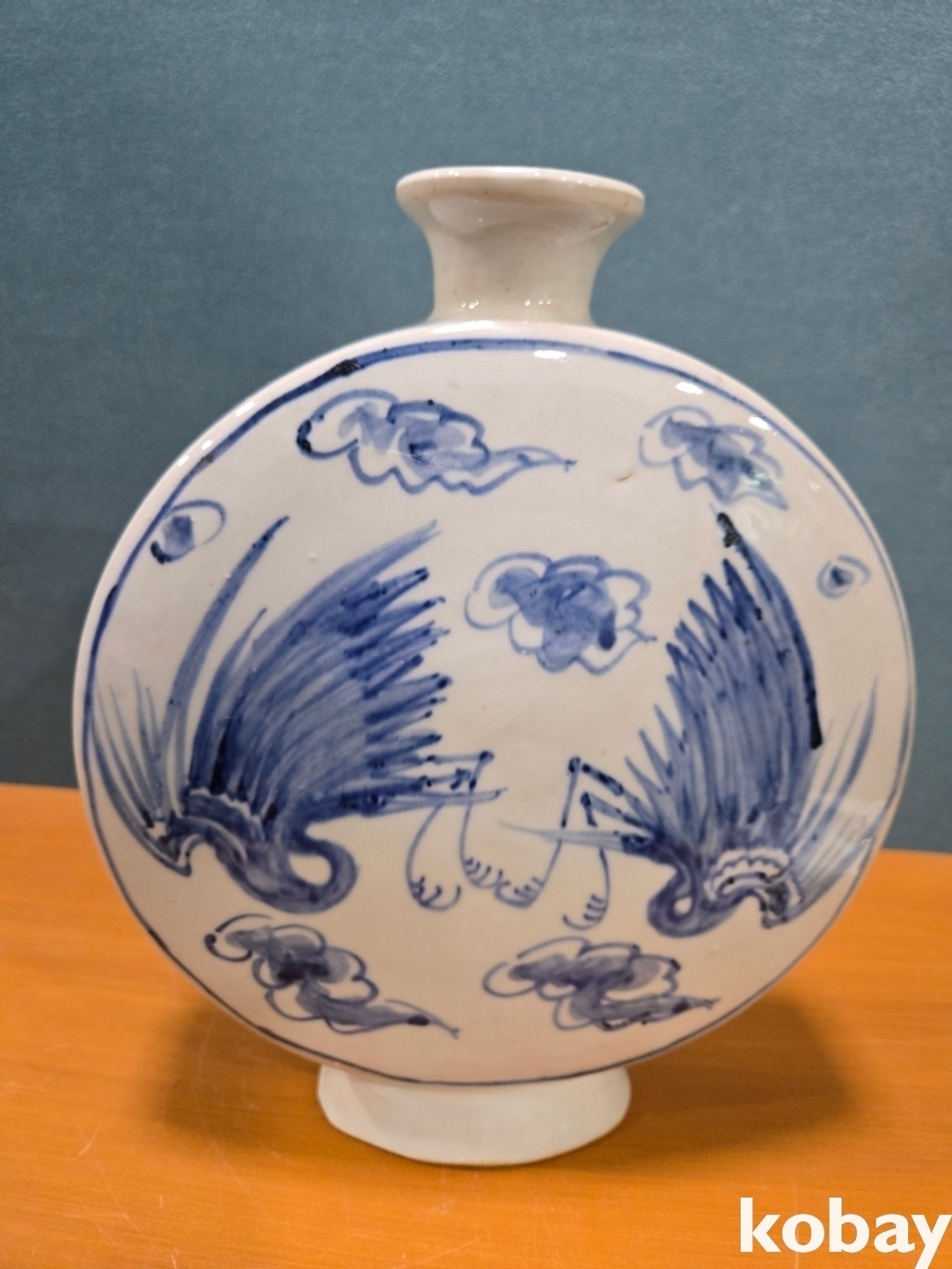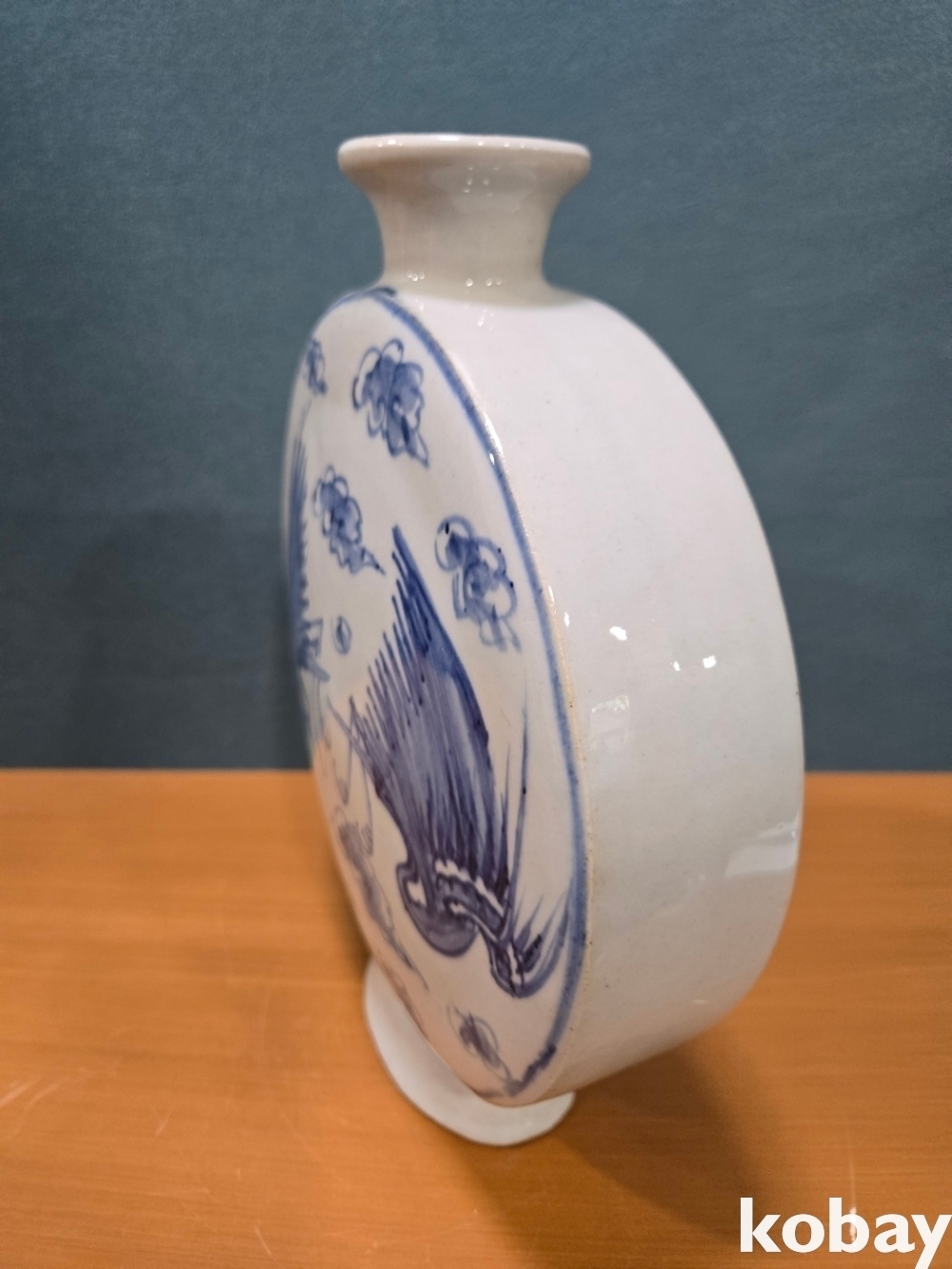 양쪽에 새 표현 둥근 편병 도자기 입니다.