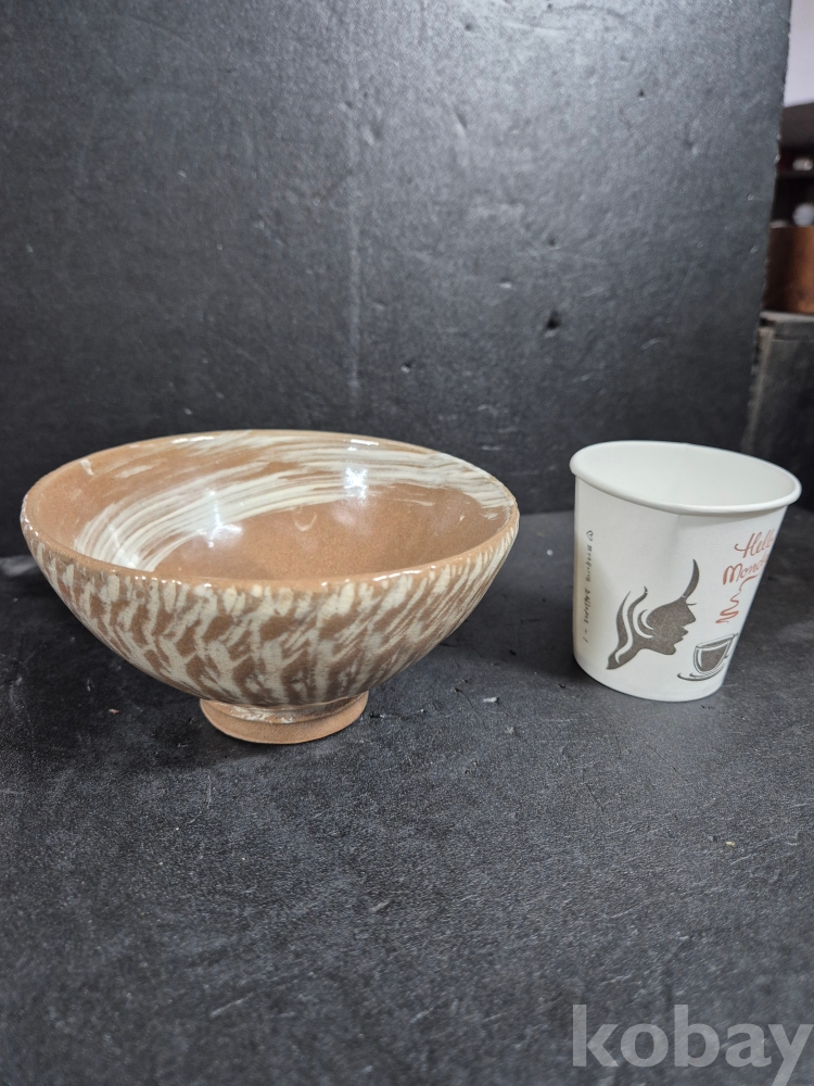 당 기물은 비파색의 태토에 귀얄로 감아 당긴 멋진 다완잔입니다.