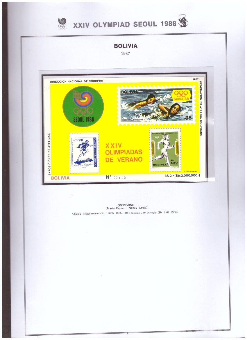 (서울올림픽) Bolivia(볼리비아) 1987 수영발레 s/s MNH