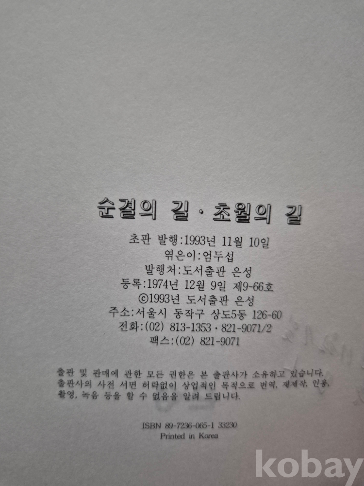 1993년 발간한 저서 『순결의 길•초월의 길』