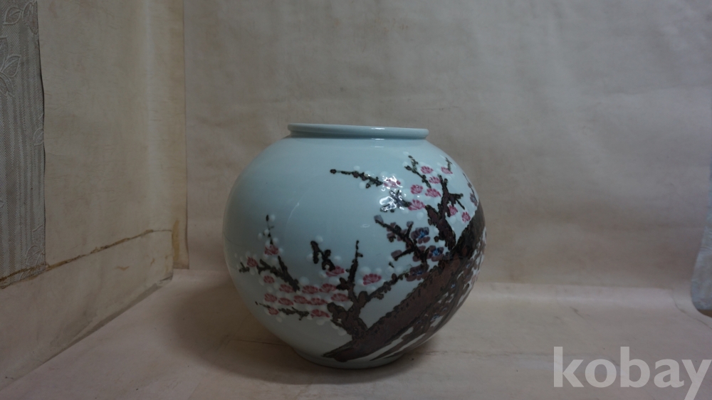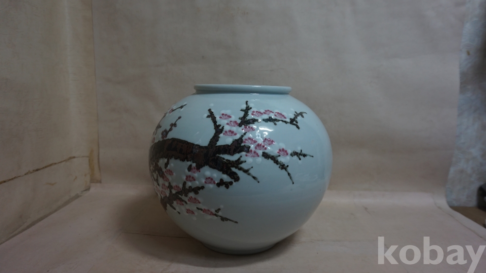 ◈◈백자../양각 채색,철화.진사 매화문,,ㅡ''큰 항아리 한점◈◈