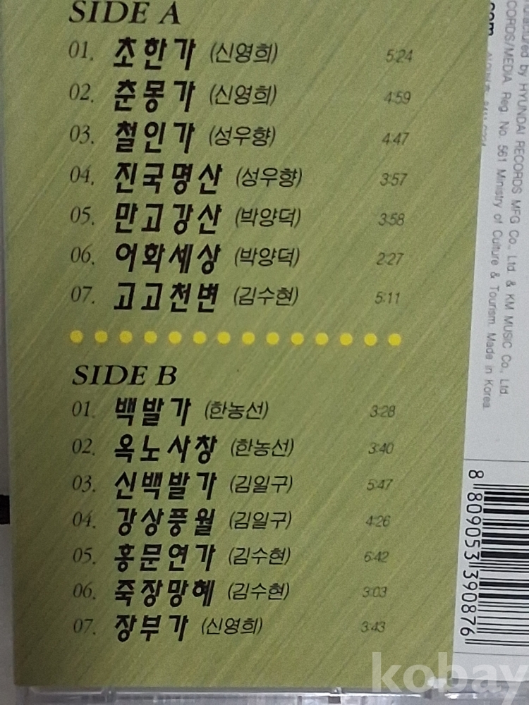 사오기미개봉, 단 가 2 초한가 춘몽가 ,,,,카세트테이프