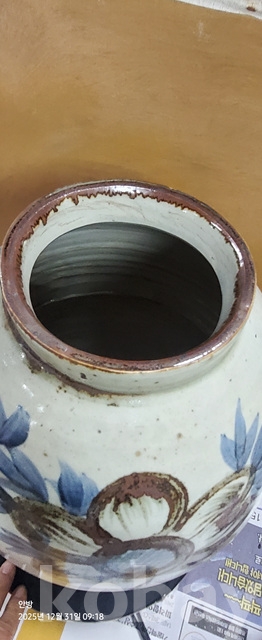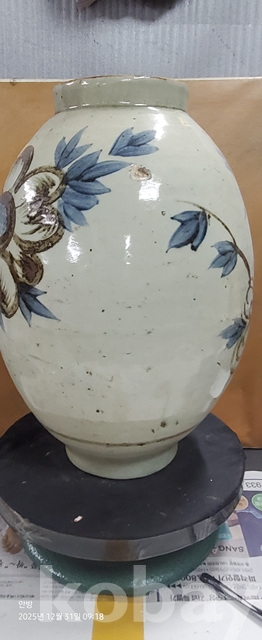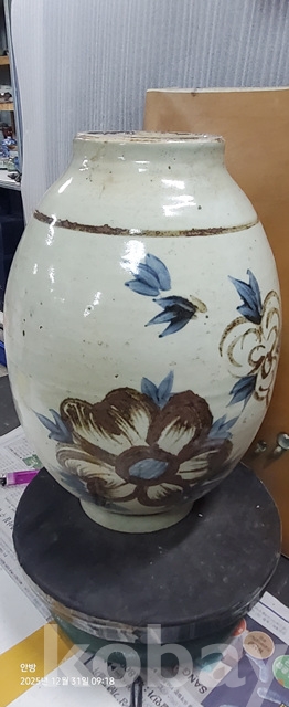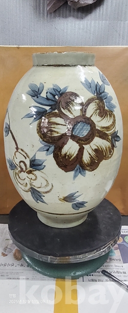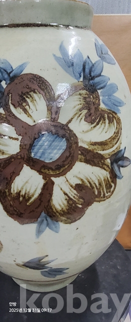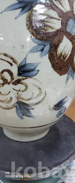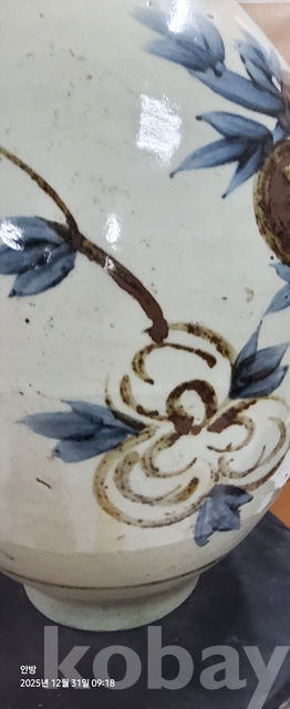 바-34.오래된 철사목단문양청화백자 고구마항아리